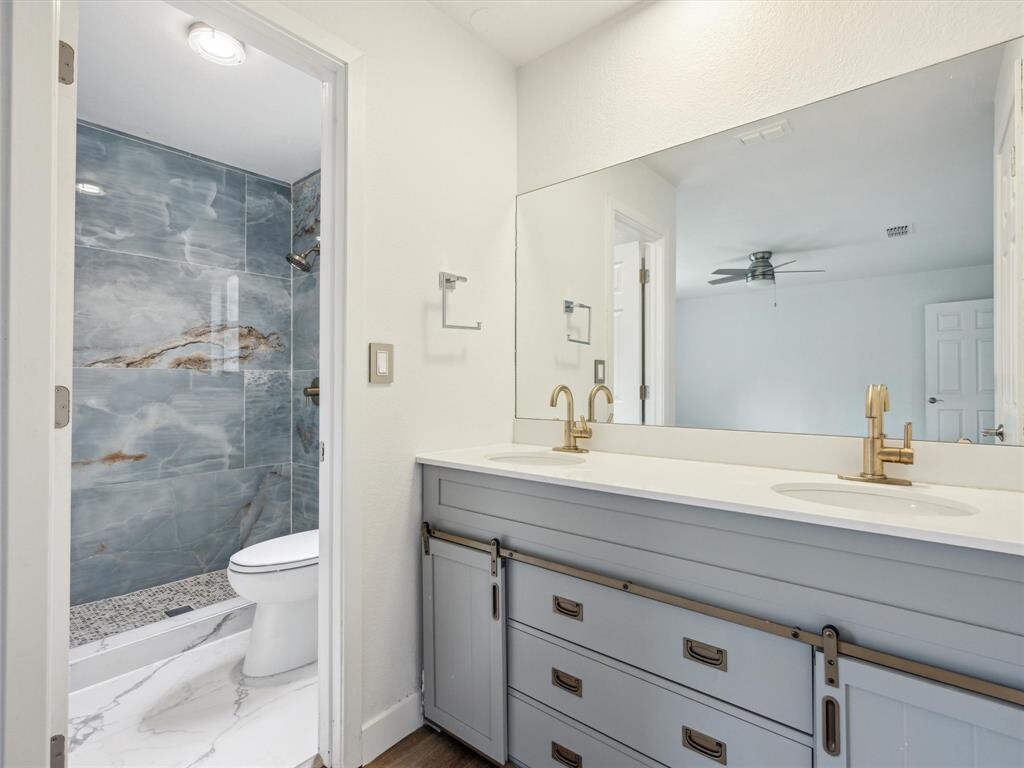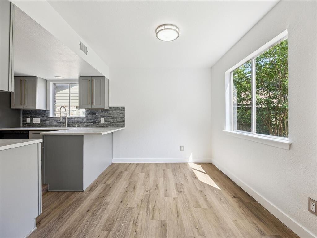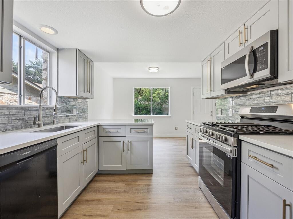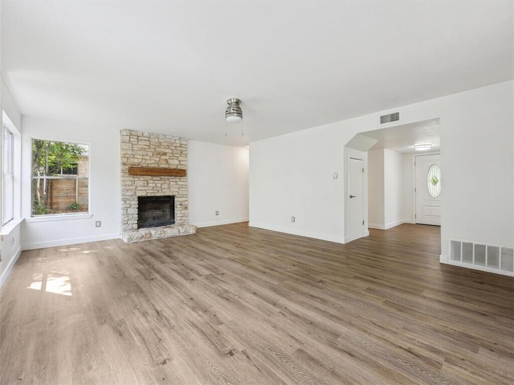 Located just 15 minutes from downtown Austin, 4525 Langtry Lane is a fully remodeled 4-bedroom, 2.5-bath home in the highly sought-after Sunset Valley area—where city convenience meets neighborhood charm. With nearly 2,000 square feet of updated living space, this turnkey property is ideal for families, professionals, and anyone seeking a modern, low-maintenance home in South Austin. Step inside to find brand-new wide-plank wood flooring, an open layout designed for both comfort and entertaining, and a spacious living area anchored by a gas log fireplace. The kitchen has been thoughtfully upgraded with sleek cabinetry, stainless steel appliances, a contemporary faucet suite, and durable porcelain tile floors—combining style and function. All four bedrooms are located upstairs, each with generous proportions and ceiling fans for year-round comfort. Both full bathrooms feature marble tile on the floors and walls, offering a touch of luxury in everyday living. The flexible formal dining space can easily function as a home office or secondary lounge. Enjoy a spacious backyard perfect for outdoor dining, play, or quiet relaxation—plus a new roof, updated garage doors, and a layout that truly lives well. With quick access to the Violet Crown Trail, Sunset Valley shopping, Whole Foods, Arbor Trails, and top-rated local restaurants, this home offers the perfect balance of nature and city living in one of South Austin’s most connected neighborhoods.