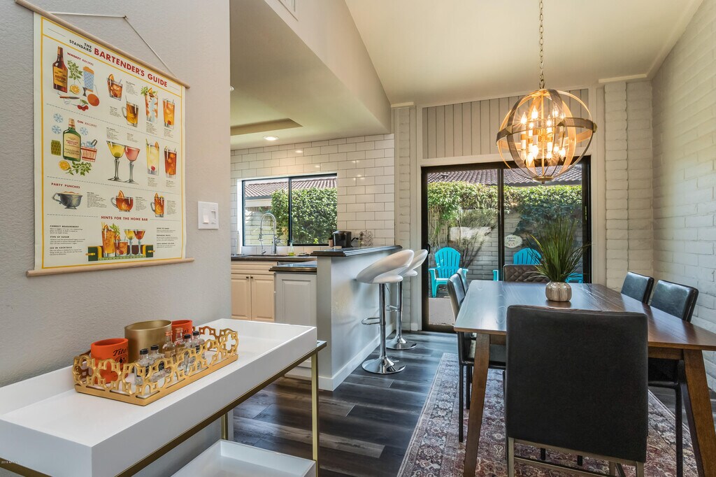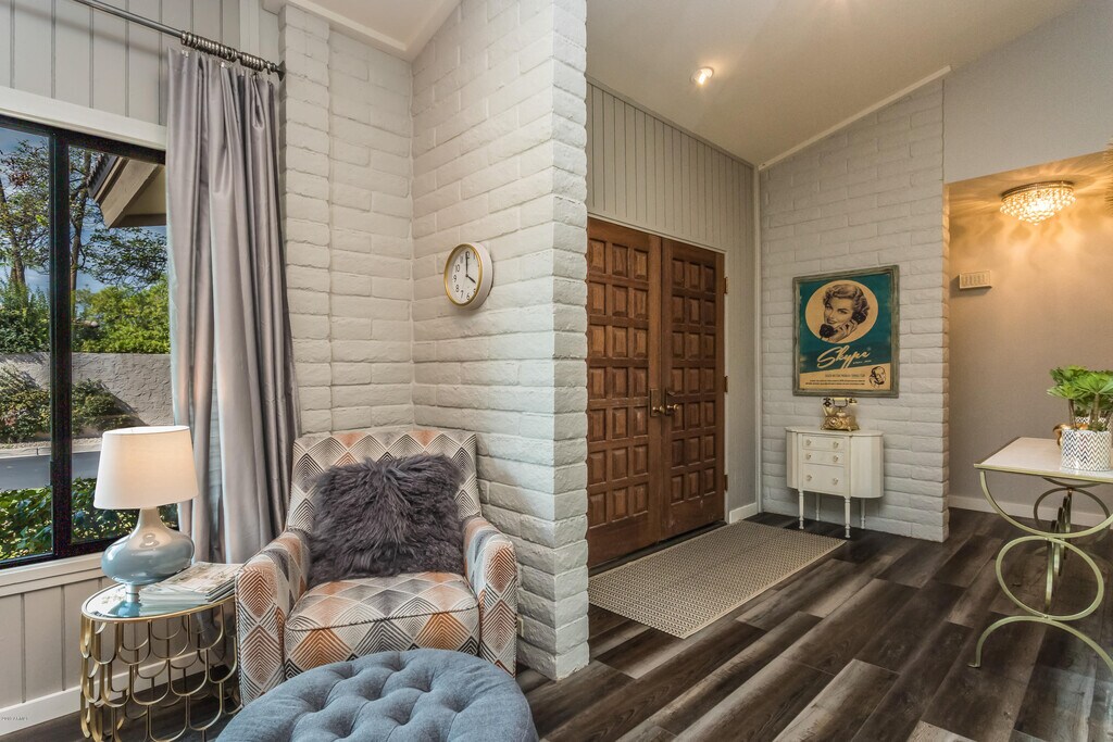 Incredible,fully furnished patio home in the coveted Casa Del Monte on the corner of 66th Street and Camelback. Located in the heart of everything Arcadia/PV/Scottsdale this mid-century charmer could not be a more comfortable place to hang out for a few months or longer. Totally renovated top to bottom with beautiful flooring,doors,windows,baths,cabinets,lighting and fixtures. Beautiful but comfortable furnishings throughout. The home lives larger than its 1300 feet with soaring ceilings,2 beds and 2 baths with a no maintenance yard in back with turf for the small dogs. This is one of only 2 freestanding units with a carport. 24 hour guard gated with multiple pools and workout room. Minimum one month rental. And the location can NOT be beat.