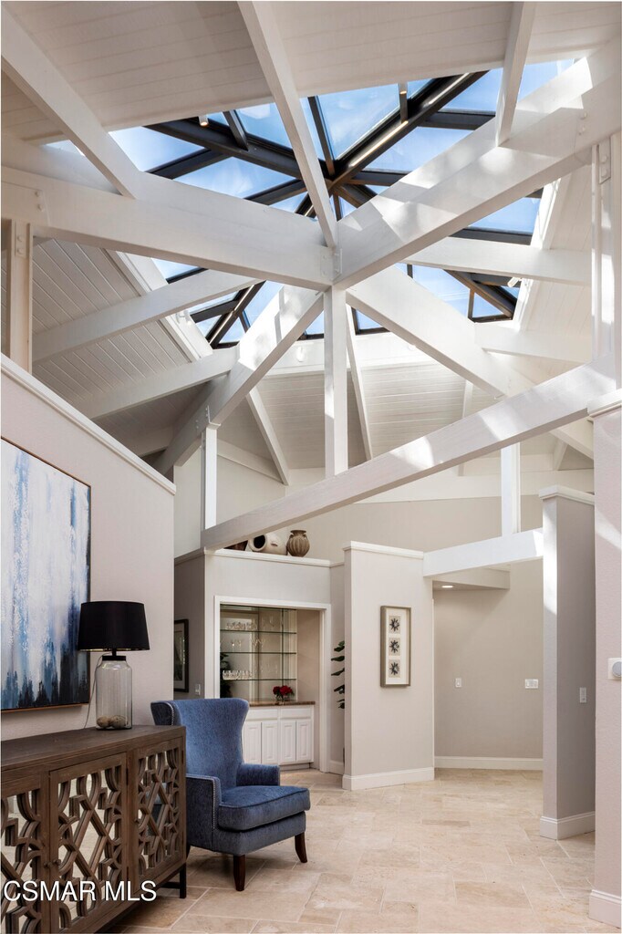 FURNISHED RENTAL! 3 Month Minimum! When the original developer of North Ranch chose his homesite in the mid 1980's, he chose 4525 Rayburn St. Dotted with majestic coastal oaks, the 29,000 SF property offered a unique serenity with a gentle rolling topography affording the architect/builder the freedom to create a genuine sanctuary. Nothing captures the spirit of man's interaction with the natural world than the one of a kind glass pyramid skylight located in the center of the soaring ceiling. The airiness and voluminous space intersect crisscrossing lumber beams, creating a sense of wonder and bliss. The tongue and groove wooden ceiling coupled with the afore mentioned beams, evoke man's connection to nature and the heavens, while the travertine floors anchor the soul to the earth. With more than 4,500 SF, including the sensational glass garden room or the detached 3 car garage/ gym and billiard hall, the space is all encompassing and engrossing. With the primary and a 2nd large ensuite on the main level, plus the kitchen, powder and open family room, this home lives easy and casual while the formal dining room is ready to meet any occasion. The lower level consists of two more bedrooms, a bath, laundry and an open entertainment room which could serve as bed 5 should your needs require it. Stepping through the main level French doors into the garden room, you feel the towering angular glass and wood ceiling, the walls of glass and used brick floor as a transition to the outside world. The yard is park like, with the sound of water cascading from the pool and its tiled water well and the walled yard features a gated circular driveway. The 3 car garage has been converted into a gym and fabulous pool hall replete with bench, barstools and pool table. Behind the garage is a small fruit tree orchard and gardening area. Additional amenities include remodeled baths, stunning millwork, both a built-in refrigerator and separate freezer along with top of the line appliances. Near the prestigious North Ranch Country Club, the finest shopping and both public and private educational opportunities, this gated estate suits everyone from the most down to earth to the most cosmopolitan.