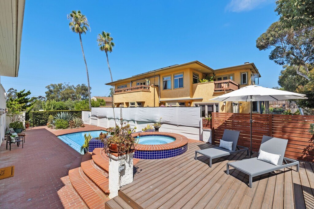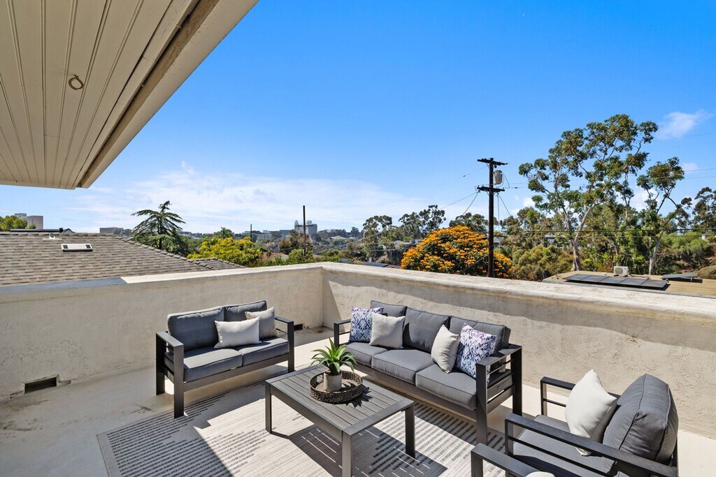 Treetop Sanctuary with Pool & Spa ***SIX MONTH MAXIMUM LEASE, SHORTER LEASE NEGOTIABLE*** Nestled into the canyon's edge, this three-level contemporary home feels like a private retreat in the treetops! Flooded with light, the dramatic living area spans two stories with an Atrium style skylight. Views and decks on each levels and from every room, make this home so inviting... not to mention a pool and spa! Hardwood floors throughout. Modern kitchen with custom wood cabinetry and granite counters, and deck access for eating Al Fresco! Primary BR is the entire lower level with view deck, and a spacious BA with two vanities, soaker tub and a large walk-in shower. Freshly painted interior throughout. Pool heat is solar generated. Large view patio over the spacious 2 car garage! And a fabulous Cul-de-sac location in Prime University Heights! WEEKLY POOL SERVICE, BI-WEEKLY LANDSCAPING SERVICE, and TRASH IS INCLUDED IN THE MONTHLY RENTAL AMOUNT. Note: Photos show home staged, furniture not included in rental.