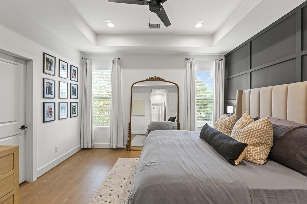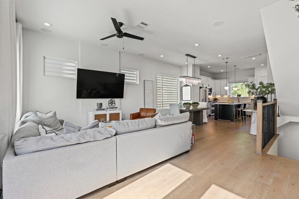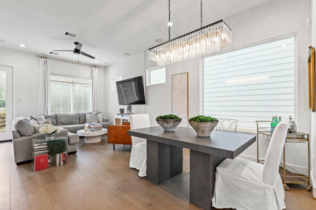 Extremely sought after home located in a gated community in Shepherd Park Plaza just minutes of the 610 loop,downtown and nearby shopping and dining destinations. Features include high ceilings,recessed lights and hardwood & tiles floors throughout. Open floor plan includes living room with 10’ ceiling,built-in ceiling speakers,access to two covered balconies & flows seamlessly to formal dining room and kitchen. Fabulous island kitchen with breakfast bar touts 42” Shaker-style cabinetry with herringbone patterned tiled back splash & lighting,upgraded GE Café series appliances includinga a 4-burner gas range with griddle,double ovens and refrigerator,washer & dryer stay with the home. Wrought iron staircase leads to owner’s suite & private bath with dual sinks,freestanding tub,oversized shower & walk-in closet. Secondary bedrooms have en suite baths & bedroom off foyer could be study. Fenced backyard is perfect for entertaining & includes artificial turf with putting green. MLS# 15392909