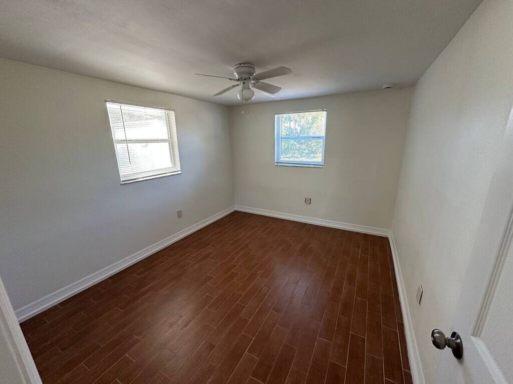 Completely remodeled 2-bedroom, 1-bath apartment in a duplex, ideally located in St. Petersburg near shopping, dining, and everyday conveniences. This unit features tile flooring throughout and a brand-new kitchen with white cabinetry, granite countertops, and new stainless-steel appliances. Enjoy all-new interior doors, newer double-pane windows with blinds, and new ceiling fans in each bedroom. The updated bathroom offers a tub/shower combination with a new vanity and shower head. Step outside to a private, fenced backyard, and enjoy the convenience of assigned parking for two vehicles. Tenants are responsible for utilities, split between the two units for water, sewer, and garbage. Electricity and internet are tenant-paid. Move-in requires first month’s rent and security deposit with approved application(s). Application fee is $49 per person, 18 years or older.