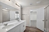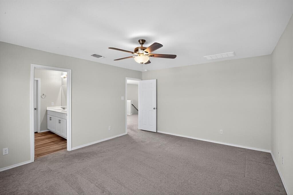 Sitting on a spacious corner lot in the Rio Lobo community, this 3-bedroom, 2.5-bath home offers the perfect mix of space, comfort, and convenience. Downstairs, you'll find a bright and open living area along with a dedicated office great for working from home or extra flex space. The kitchen comes equipped with white cabinets, granite countertops, stainless steel appliances, a walk-in pantry, and bonus storage under the stairs. Upstairs opens to a large second living/family space, perfect for relaxing or entertaining. The primary suite features a walk-in closet and full bath, and another bedroom upstairs includes its own walk-in closet as well. Natural light fills every room. The backyard is great for pets or weekend hangouts, with sprinklers front and back. Two-car garage included. Pets ok; limit two; no weight restriction. *** Resident must choose between two resident benefit packages at time of application.