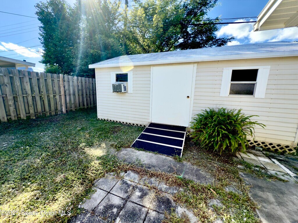 This 2 bedroom,2 bath home is located in a convenient location off of Highway 50 in south Titusville. Large living area,spacious kitchen,open front porch and rear screened porch. Large Laundry room with washer and dryer hookup,space for pantry and extra storage. Main bedroom has ensuite bath with step in shower. Hall bath has tub/shower combination. The back yard is fenced and there is a storage shed available for tenant use. Double paved driveway parking multiple vehicles,or boat or RV. Basic lawn care included. Home has fresh paint in main living area,a brand new roof and brand new AC unit. 1 dog will be considered on a case by case basis.