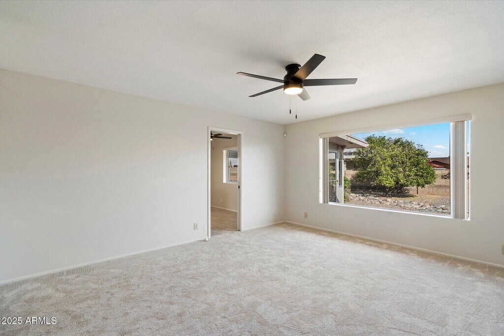 Come live the good life in Sunland Village! This light & bright 2 bedroom,2 bath home was recently refreshed & features a wonderful floorplan with flexible spaces for all your hobbies. Enjoy new carpet & tile,new ceiling fans,fresh interior paint & the comfort of a newer HVAC(2019). The AZ Room and lovely backyard are the perfect places to enjoy the beautiful winter weather. The spacious 2 car garage has built-in cabinets,washer,dryer & sink. Sunland Village is a vibrant 55+ active adult community offering swimming pools,tennis and pickleball courts,great golf course,fitness center,social events,movie nights,and so much more! This is the perfect place to embrace an engaging and fulfilling lifestyle in beautiful Arizona!