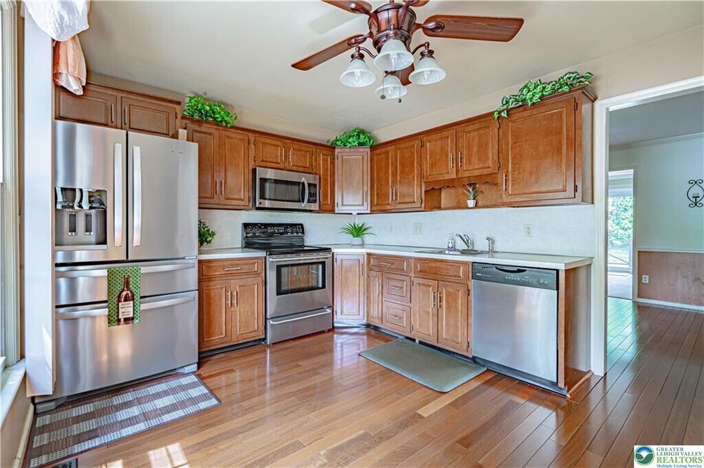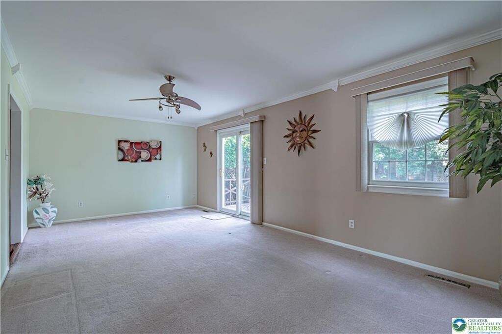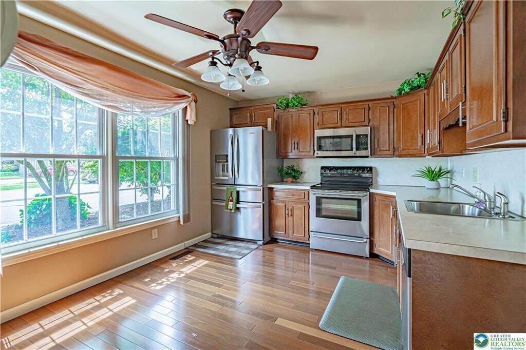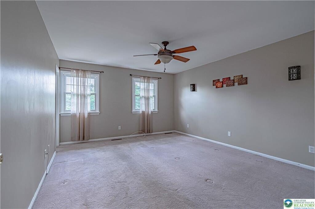 Meticulously cared for and beautifully appointed, this 3BR townhome in Clearview Manor offers 3 BRs, 2.5 bathrooms, ample storage space and more! The bright eat-in kitchen has wood cabinets and SS appliances. The formal dining room with crown molding flows into the large family room featuring sliding doors w/access to back deck. A 1/2 bath and laundry closet complete the 1st floor. Upstairs the primary BR has two large closets, ceiling fan and full bath. BRs 2 & 3 also have ceiling fans. The basement is split into two storage areas for the homeowner and tenant. Conveniently located to *everything* -- walk to Prater Park w/tennis and pickleball courts, basketball, playground and gazebo. Easy access to 78, 309, 222 and Tpk, as well as LVHN Cedar Crest, shopping, restaurants and more. Tenant resp for elec, water, sewer, trash, lawn/garden care, snow removal on walkway. HOA provides snow removal/lawn care in common areas. Tenant will have access to storage in backyard. NO PETS/SMOKING, NO EXCEPTIONS. Carpets will be professionally cleaned prior to move-in.