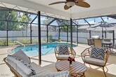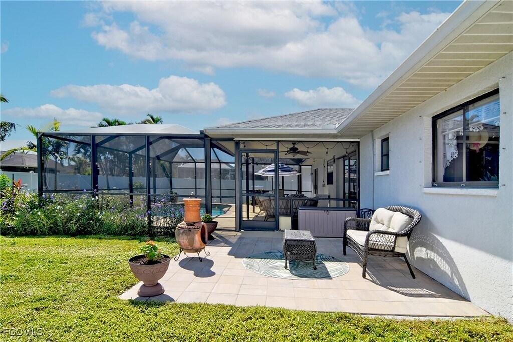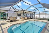 LOCATION AND MOVE IN READY! This home is light,bright & immaculate! Welcome to desirable southwest Cape Coral. Seconds from Publix & awesome dining. Ten minutes from downtown and all the amazing happenings. 30 minutes to the best beaches. New hurricane impact resistant sliding doors,new plumbing 2020,new electric 2020,new a/c 2022,new roof 2023 & an updated kitchen 2022! It's like a brand-new home! This home has vaulted ceilings,tile floors throughout,the open concept kitchen has terrazzo countertops,gorgeous tile backsplash,white cabinets,& stainless appliances. The bedrooms are a split floor plan. The master suite & ensuite is spacious and leads to a beautiful lush,landscaped sanctuary in the back yard with a saltwater pool. The two guest rooms are spacious,light and bright,with large windows. There is a front screened lanai and a pocket slider in the back for the best cross breeze on cool days. This is an oversized corner lot with a large privacy fence makes the back yard living exactly what you are looking for in your new Florida home.