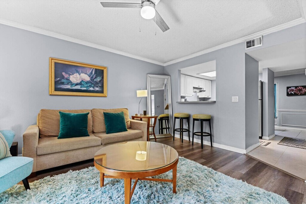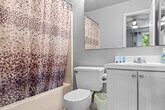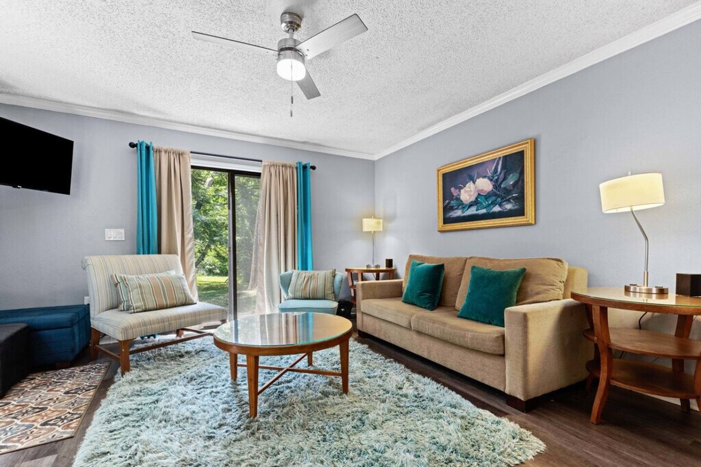 Feel at home in this nicely updated 2-bedroom, 2.5-bath townhome in a great location. This cute townhome features a living area downstairs that includes a half bathroom. Upstairs, each of the 2 bedrooms has its own bathroom. One bedroom has a queen bed, and the second bedroom has two twin extra-long beds. The living room couch is a pull-out sofa sleeper. This townhome is conveniently located only 3.5 miles from Shands, North Florida Medical Center, UF, and VA, with easy access to I75. It's about 1 mile to shopping and an abundance of restaurants, and close to Celebration Pointe and Butler Plaza. Prior to arrival, guest verification will be completed through a third-party provider. [SI]