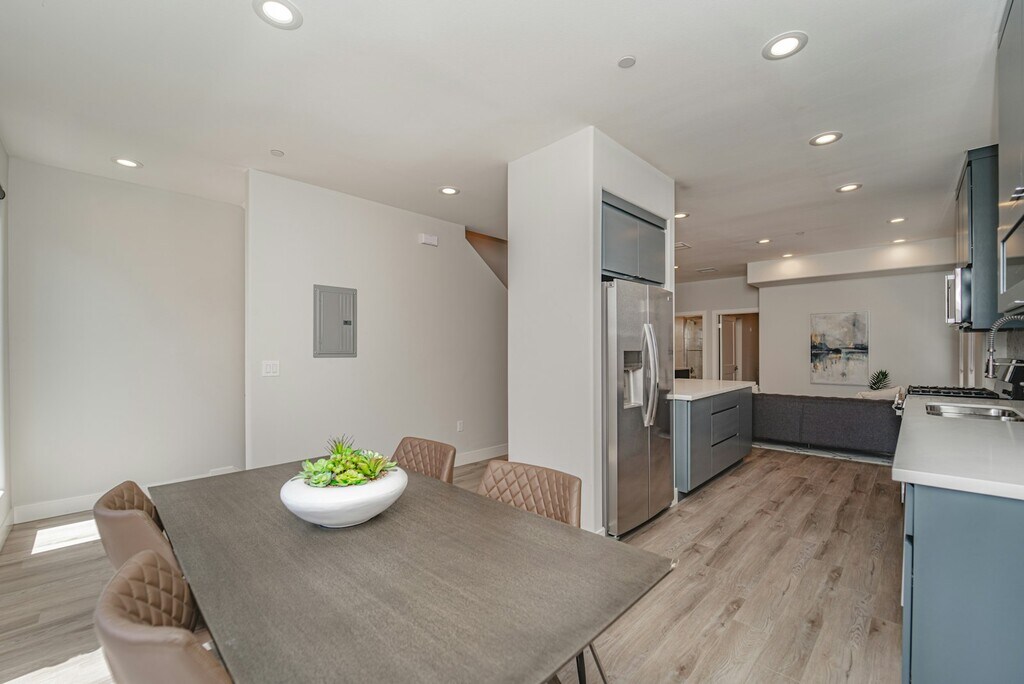 This 3-story 4 bed and 4 bath unit, which has a rooftop deck with a 270-degree view of Downtown to Century City, is ideal for tenants in search of modern living with lots of outdoor space on the rooftop and a balcony. The property has coded pedestrian and vehicle entry gates and exterior video cameras, which provide convenience and security. The landscaping on the property gives the property a nice hint of color and curb appeal. This particular unit was designed with ample open space, dining, and living rooms, including a luxurious island and lots of counter space, which are perfect for gatherings. The bedrooms were designed to be large and with lots of closet space and natural light. This is truly a must-see, one-of-a-kind unit with lots of glass. The unit includes: ***Modern Grey Cabinets with soft close hardware ***Stainless appliances (Microwave, stove, dishwasher, refrigerator) ***Quartz countertops ***Mosaic tile backsplash ***Modern tiled bathrooms with contrast niches ***8.5' Ceilings ***LED Recess Lighting ***Laminate wood flooring ***In unit washer and dryer included ***Central AC and Heat with NEST control thermostat ***Attached 2-car space parking ***3 bedrooms have in-suite bathrooms ***Private rooftop deck ***Large windows and lots of natural light ***Roller shades ***Private patio 3D Tour: Do NOT Submit an Application from this website, please email the leasing agent to request an application package or to apply using our online application process.