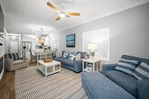 Great short-term rental opportunity now through March 31, 2026! Welcome to paradise! This beautifully renovated 3-bedroom, 2-bath end unit comes fully furnished and ready for you to enjoy coastal living at its finest. Nestled under majestic oak trees in a private gated community, this spacious condo features an open floor plan with abundant natural light streaming through multiple windows. Step out onto your covered balcony and take in the peaceful views of Terry Cove—perfect for morning coffee or evening sunsets. The primary suite is a true retreat, boasting a fully renovated bathroom with an oversized walk-in shower featuring three shower heads, double vanity, walk-in closet, and a private water closet with beautiful custom wood-planked ceilings. Additional highlights include a full laundry room with custom cabinetry and a full-sized washer and dryer, waterproof plank flooring throughout, and custom wood-planked ceilings in both bathrooms. Enjoy community amenities including two outdoor pools (one overlooking Terry Cove) and a gazebo ideal for relaxing or entertaining. This unbeatable location offers quick access by golf cart to the beaches, Back Country Trails, restaurants, and local entertainment. Don't miss this incredible opportunity to rent your own slice of paradise on the Alabama coast!
