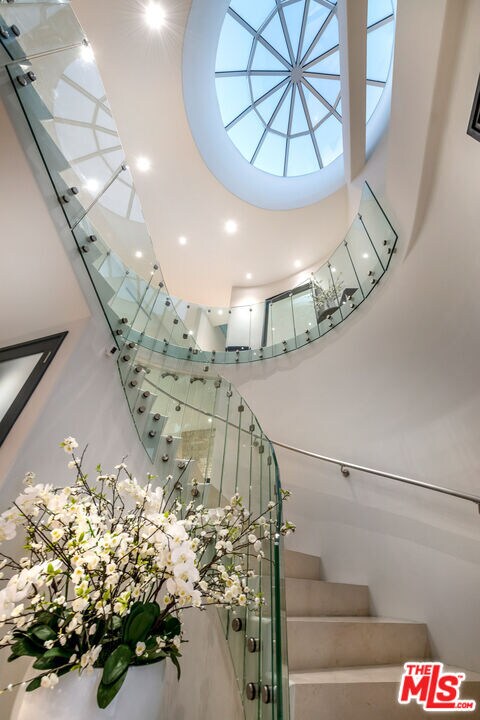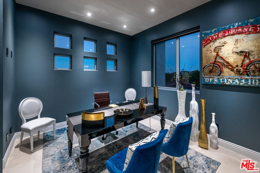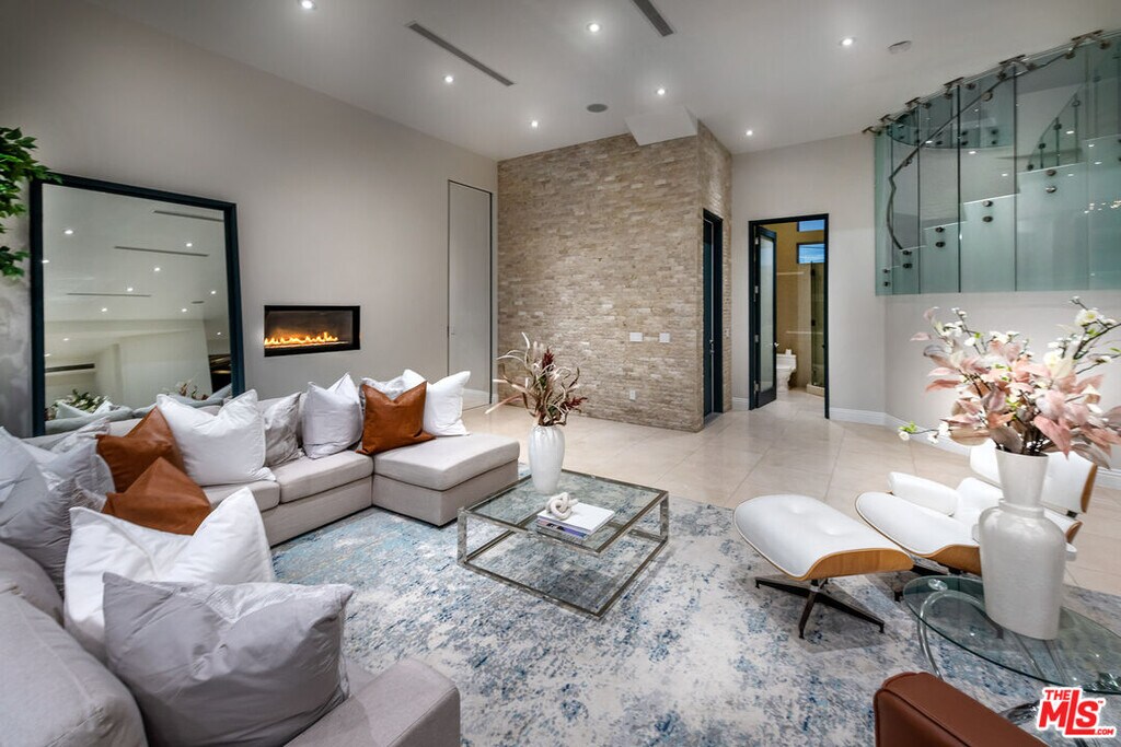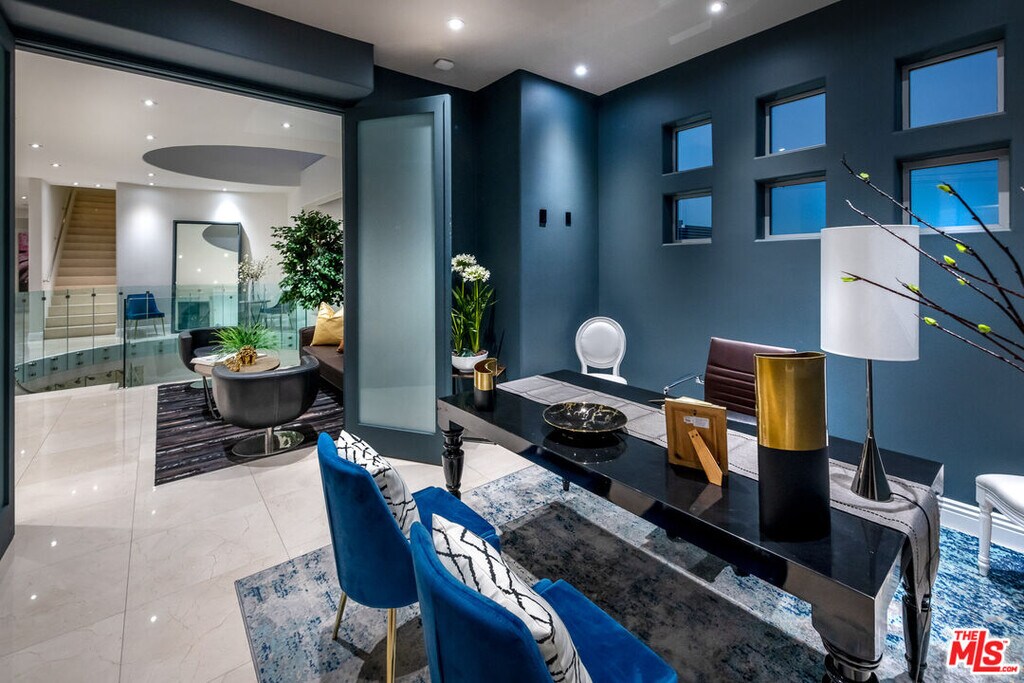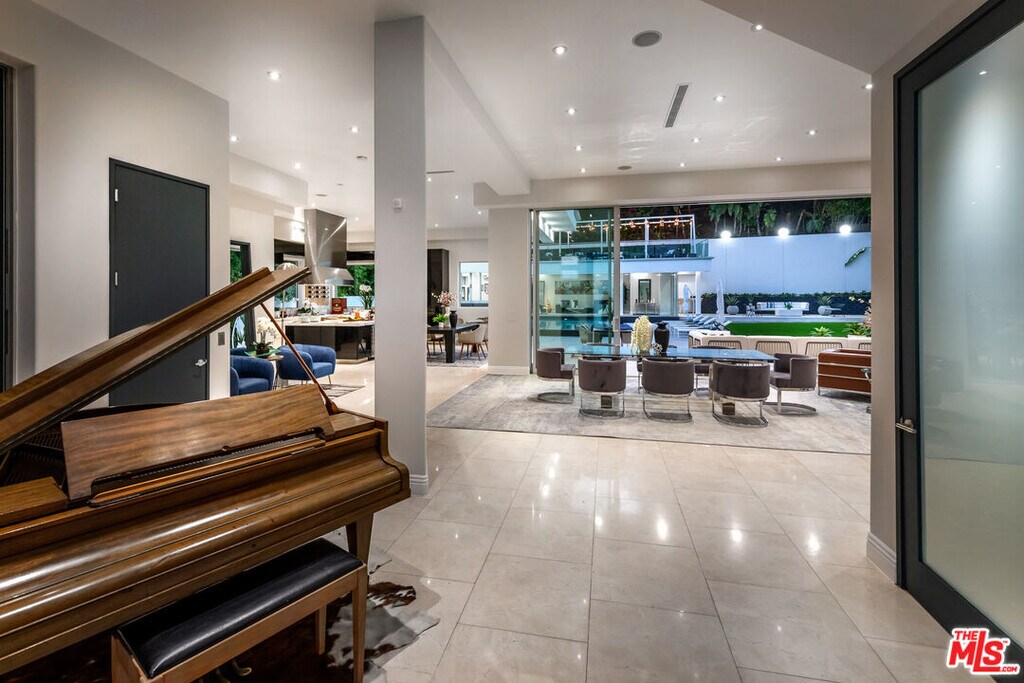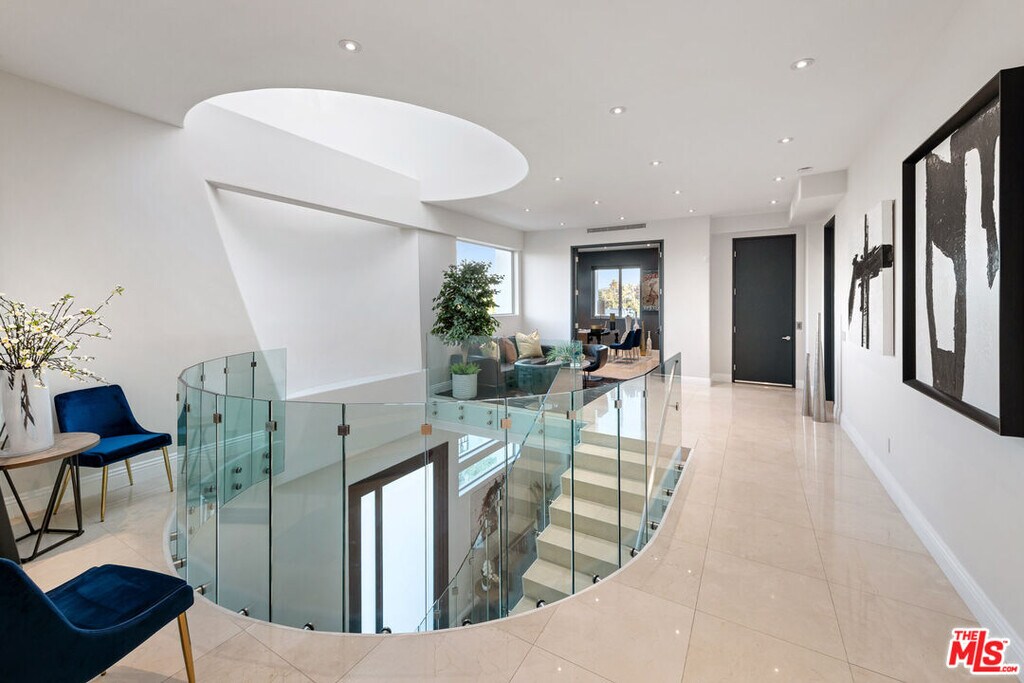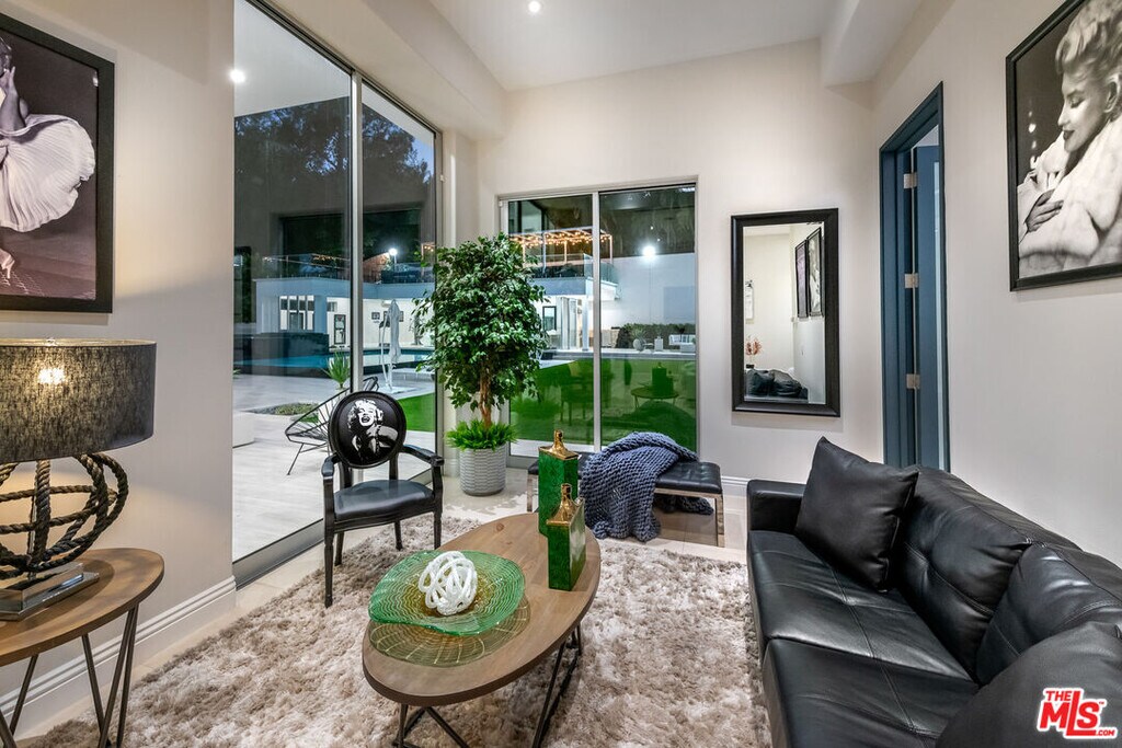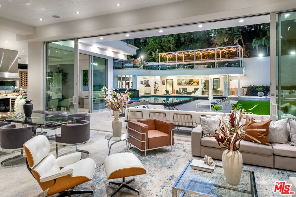 Privately gated and architecturally striking, this contemporary Encino masterpiece is thoughtfully designed for elevated living and effortless entertaining. Expansive walls of floor-to-ceiling glass blur the line between indoors and out, opening to multiple rooftop and deck spaces, a resort-style pool and spa, and a fully equipped pool house creating a seamless indoor-outdoor lifestyle of the highest caliber. The dramatic great room flows directly into a chef's kitchen featuring Calacatta Gold marble countertops, Viking appliances, and sleek stainless-steel finishes. Additional highlights include a dedicated home theater with 4K projection and premium surround sound. Upstairs, six generously sized ensuite bedrooms offer privacy and comfort, including a secluded primary retreat with an expansive balcony, walk-in closet, private office, and a spa-inspired bath complete with an infinity soaking tub, dual vanities, and steam shower. This privately gated SMART home is outfitted with integrated Sonos audio, LED lighting, expert landscaping, a striking vertical garden, and a three-car garage. A bold expression of modern luxury, this residence is a true statement home in one of Encino's most desirable settings. MLS# 26642095