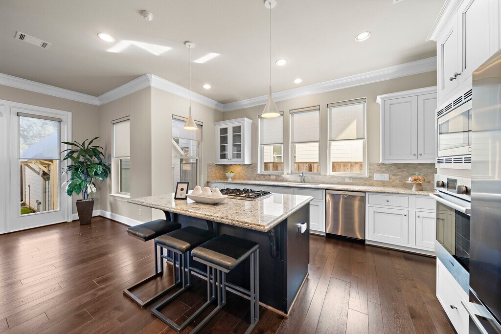This meticulously maintained gem is nestled along the idyllic tree lined Polk Street,just moments from some of Houston's major attractions! This 4-bedroom,3.5 bathroom home is a masterpiece that offers attention to detail,evident from the custom hardwood flooring to the high end finishes throughout. The open concept living area offers an abundance of natural light flowing seamlessly from the stylish living area with an elegant wood burning fireplace to a gourmet kitchen featuring high end stainless steel Bosch appliances,quartz countertops,and handcrafted cabinetry. The detached two car garage offers a spacious upstairs area for storage and features a level 2 EV/Tesla charger. Completely fenced with an automatic privacy gate,you'll find plenty of front and back yard to entertain. HOA fees? Absolutely not! Come see for yourself how this home balances style and functionality! Schedule an appointment quickly!! MLS# 43965487