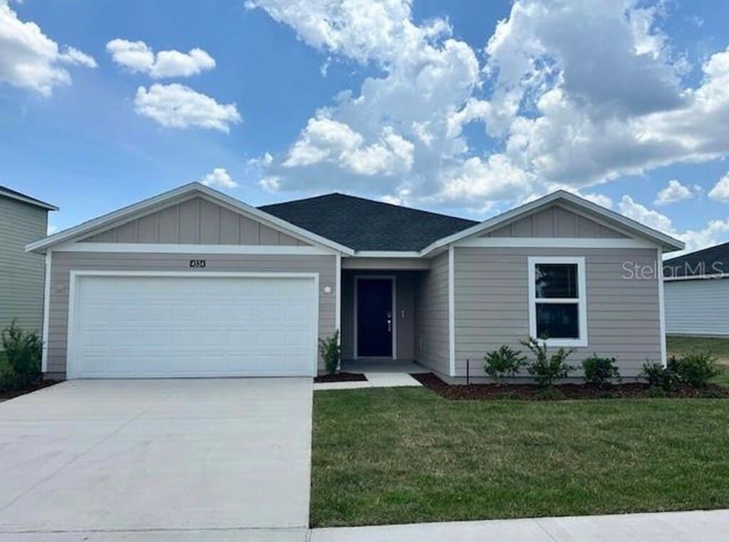 Beautiful new construction home in the highly desirable Southwest Ocala community of Marion Ranch! This beautiful home has everything you need to live in comfort and style, and boasts 4 bedrooms, 3 full bathrooms and a 2-car garage. This lovely home has 2 bedrooms and a bathroom immediately off of the front entry foyer. Continuing through the home is an additional flex room that is perfect for a home office, toy room or quiet reading area. The large open layout includes a combination living and dining area that overlooks the large island kitchen, complete with quartz countertops, 42-inch cabinets and stainless-steel appliances. The third bedroom has its own private en suite bathroom that is perfect for guests. The main living area has luxury vinyl plank flooring, adding to the sleek, modern appeal of the home. Enjoy the warm Florida weather while relaxing on the porch in your backyard that is fully enclosed with a privacy fence. Marion Ranch is closely located near shopping, restaurants, medical facilities and major travel roadways. Schedule your showing today!