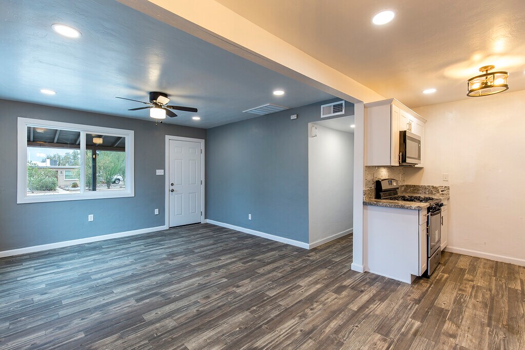 Beautifully remodeled 4-bedroom, 2-bathroom home in Central Tucson, located just steps from Linden Park. This warm and welcoming home features modern upgrades throughout, including refreshed interior finishes, updated bathrooms, and brand-new stainless-steel appliances. The bright, open layout creates an inviting atmosphere, with upgraded lighting, ceiling fans in every room, and durable hardwood-style flooring that brings the whole space together. You’ll also enjoy central AC/heat, a brand-new GE washer/dryer 2-in-1 combo, and a spacious fenced backyard—perfect for pets, quiet mornings, or relaxing evenings under the covered patio. The location provides quick access to the University of Arizona and Banner Medical Center, making it especially convenient for university professionals, medical staff, and anyone who values an easy commute. Available February 1, 2026. Reach out with any questions or to schedule a tour.