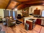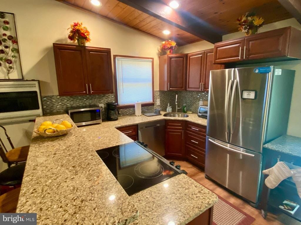 Move right into this updated and well-maintained 4-bedroom, 2-bath ranch located in the desirable Pine Ridge community. The open-concept living area welcomes you with vaulted, wood-beamed ceilings, large windows that fill the space with natural light, and a cozy brick fireplace perfect for winter evenings. The beautifully updated kitchen features granite countertops, tile backsplash, stainless steel appliances, and a breakfast bar that flows seamlessly into the dining and living spaces — ideal for entertaining or everyday living. The home offers four generously sized bedrooms and two full baths, including a primary suite. A convenient main-level laundry with stacked washer/dryer makes single-level living a breeze. Step outside to enjoy both a welcoming front deck and a private backyard accessed through sliding glass doors, perfect for outdoor relaxation and gatherings. Community amenities include a clubhouse, outdoor pool, tennis courts, playgrounds, and more. Located on a level lot with public water and septic, this home is just minutes from schools, shopping, hiking trails, ski resorts, and other Pocono attractions. Tenant Information: Tenant responsible for utilities. No smoking. Pets case by case