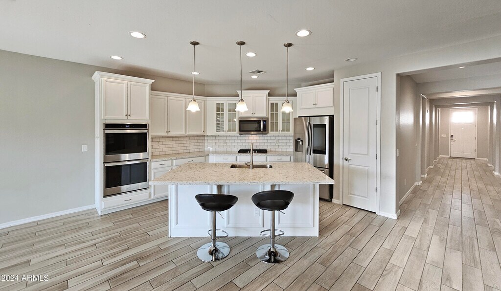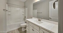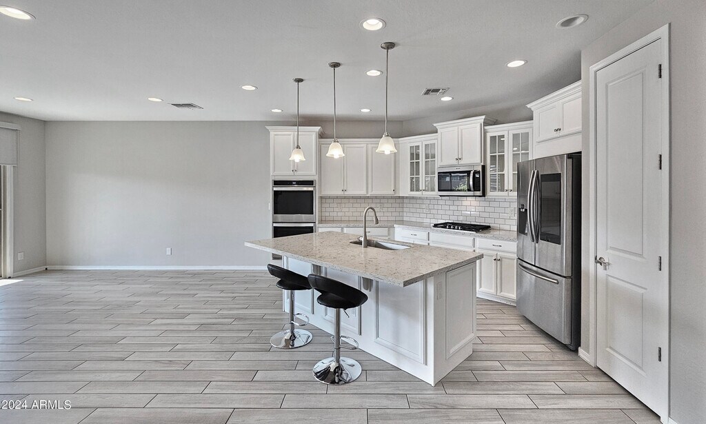 Beautiful ample 4bedroom/ 3bathroom single story home in Gated Community with Den/Flex-room by the front door. The home boasts light filled space,plantation shutters,a gourmet kitchen with Stainless steel appliance; Tahoe Maple square cabinets with quartz countertops and tile backsplash,restful backyard,and lofty high ceilings. Upgrades tile through-out with plush carpet in bedrooms. Master bedroom has contemporary walk-in shower,separated laundry room,and so much more.