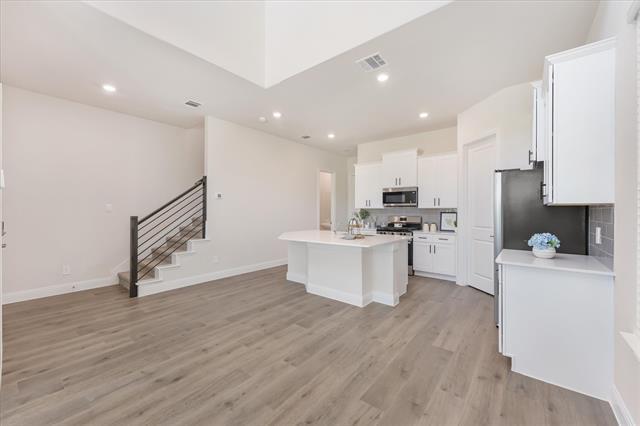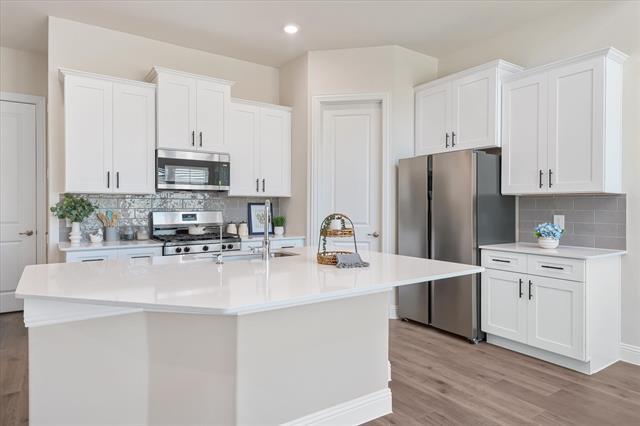 This 3-bedroom, 2.5-bath home features an open-concept first floor with a spacious family room that flows right into a chef-inspired kitchen. You’ll love the oversized quartz island—perfect for casual meals or entertaining—along with soft-close shaker cabinets, stainless steel appliances, and a large pantry for extra storage. Upstairs, the private primary suite offers a roomy walk-in closet and a well-appointed bath with a walk-in shower. Two additional bedrooms share a full bathroom, making it a great setup for family or guests. The home also includes a two-car garage and a tankless water heater (per community standard). Plus, the owner provides a washer, dryer, and refrigerator, and the HOA handles both front and backyard maintenance for easy living.