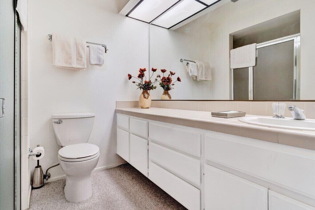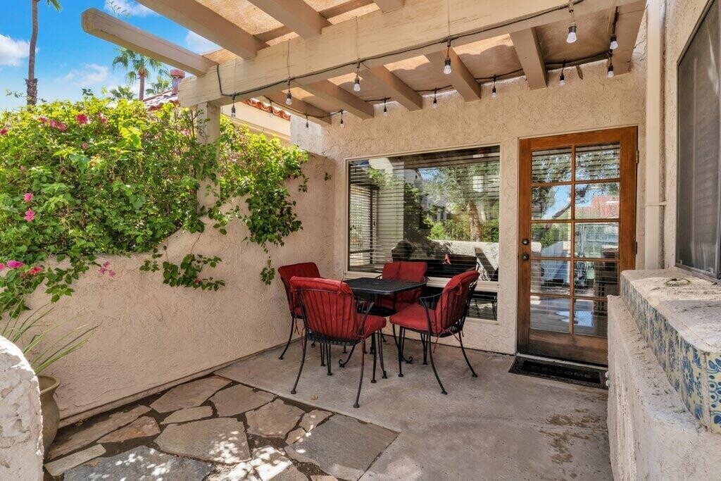 AVAILABLE OCTOBER 15,2025 LONG-TERM LEASE ($2,900/Mo.) OR SHORT-TERM/SEASONAL (30+ Days @ $5,900/Mo). Experience desert living at it's finest in this TURNKEY FURNISHED 2-bedroom,2-bath residence,ideally situated in South Palm Desert's highly sought-after El Paseo Villagebehind Mastro's Steakhouse and just a short stroll to famed El Paseo,known as the ''Rodeo Drive of the Desert.'' This impeccably maintained home features soaring vaulted ceilings,a central wet bar,formal dining area,sunlit eat-in kitchen,and a spacious guest suite on the main floor. The upstairs primary suite offers a private,tranquil retreat and picturesque mountain views. Thoughtfully designed for indoor-outdoor living,the home includes a welcoming front courtyard and a covered rear patio that opens seamlessly from both the living room and kitchenperfect for morning coffee or evening cocktails. Just steps beyond the patio,enjoy direct access to community amenities,including two tennis courts,two pickleball courts and two sparkling pools and spas. Whether lounging poolside,entertaining guests,or exploring world-class shopping,dining,and golf just moments away,this residence offers the ultimate Palm Desert lifestyle. Offered fully furnishedsimply bring your suitcase and settle into your desert retreat. Tenant Parking: 1 assigned parking space and 1 unassigned space. Minimum Gross Income: $8,700/mo (3x Rental Amount) and FICO score: 660+. One spayed or neutered pet under 30 lbs will be considered (breed restrictions may apply). No smokers please.
