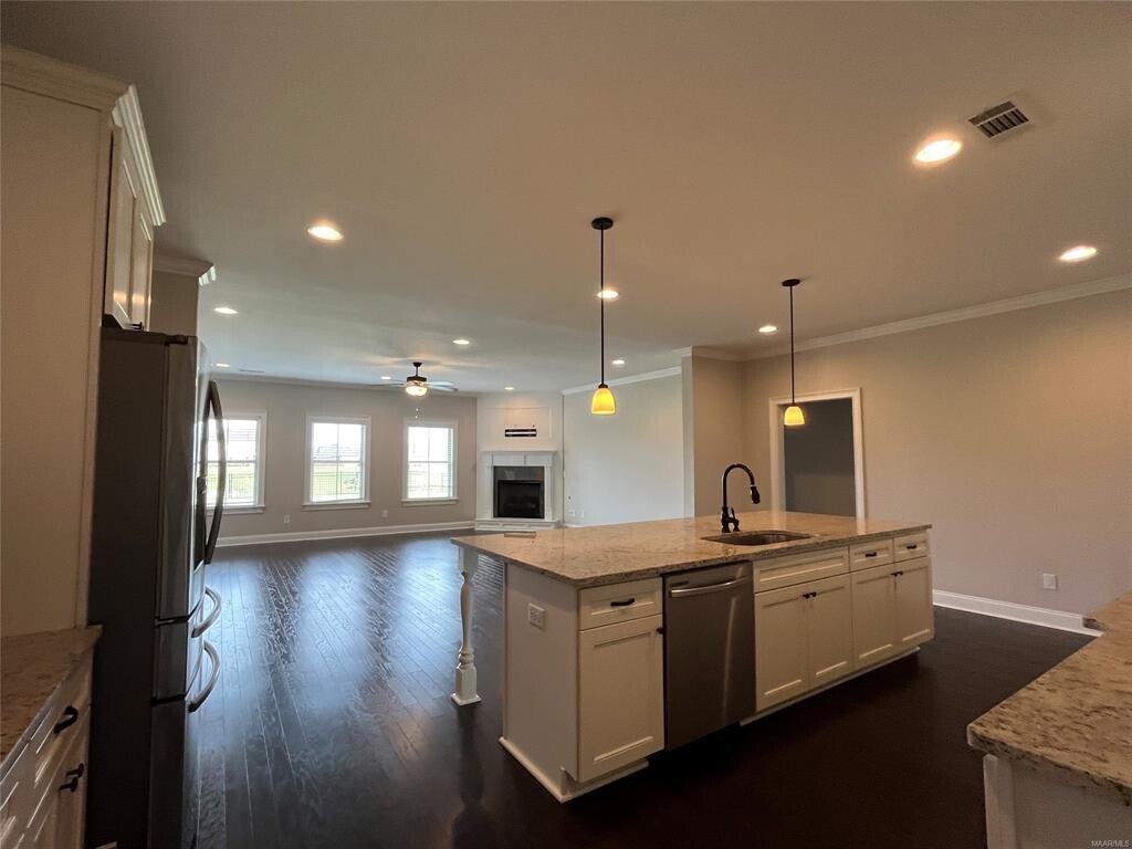 Built in late 2021, this Gorgeous Four bedroom, Four bath plan with oversized Bonus room located in Boykin Lakes (Pike Road) is comfortably situated in a cul-de-sac offering a spacious lot bordering the neighborhood lake offers plenty of room to relax and entertain. Currently occupied through June 30, 2025, this home will be available for lease starting July 1, 2025. Enjoy the fenced back yard which includes an extended concrete patio and covered area. Entering this home you will find many upgrades from wainscoting, coffered ceilings, and granite countertops. A refined foyer entry way opens into a roomy kitchen and living/entertaining space. The open kitchen includes a large center island with granite countertops, SS appliances, and plenty of storage space. The master quarters provides a large bedroom and walk in closet, as well as a luxurious bathroom complete with a double vanity, garden/soaking tub, and large tiled shower. The bonus room located upstairs includes a full bathroom and has plenty of possibilities as an entertainment area, office space, or extra bedroom. The living areas are covered with beautiful hardwood flooring. 12-month lease term. No smoking allowed in this home. Pets: upon approval by the homeowner (pet fee). Available by early July. PHOTOS are for reference for room sizes and layout.