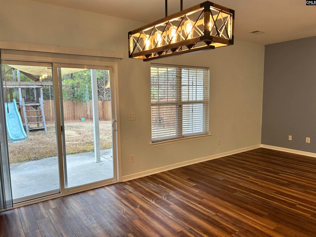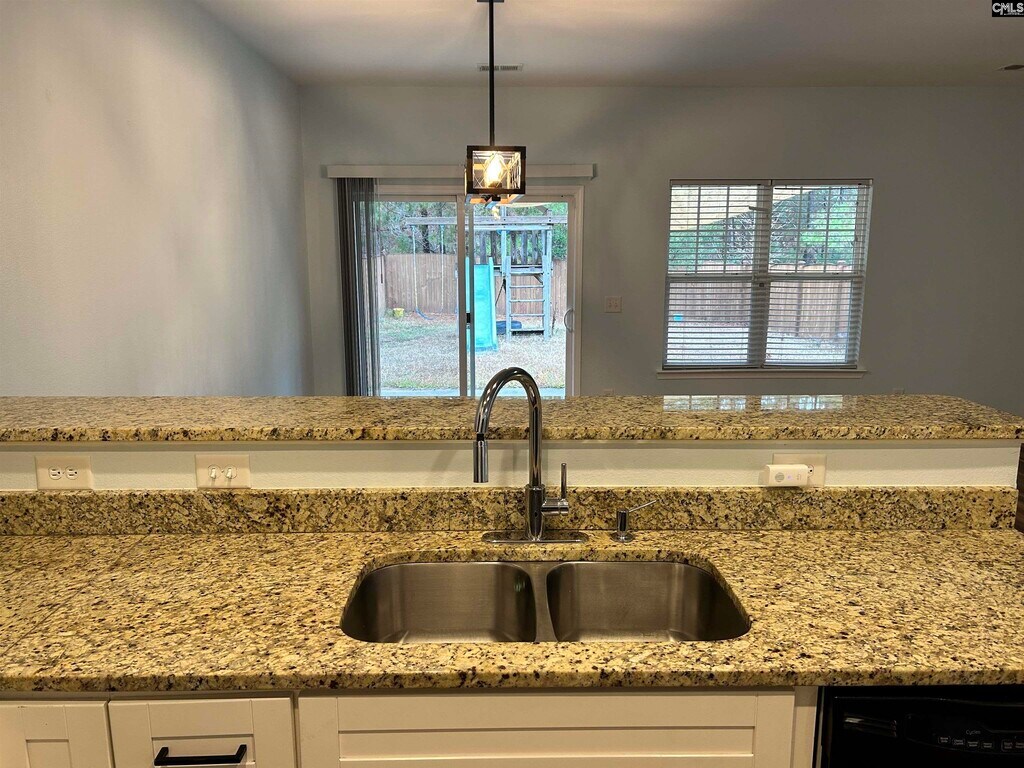 This stunning, energy-efficient property features ultra-high smooth ceilings, three bedrooms, two-and-a-half bathrooms, and a single-car garage. The highly desirable open floor plan is perfect for family gatherings or watching the big game. Luxury vinyl plank flooring extends throughout the common spaces on the main level. The chef-style kitchen is a highlight, boasting granite countertops, stainless steel appliances, and ample counter and cabinet space, all seamlessly integrated with the spacious great room. Adjacent to the great room is a separate entrance to the oversized rear patio area, ideal for grilling enthusiasts and backyard BBQs. Upstairs, the owner's suite offers a private spa-like full bath with an oversized walk-in closet, a walk-in shower, and double vanities. The two secondary bedrooms are bright and open, sharing a spacious full bath. Additionally, the second level includes an open loft area and a walk-in laundry room. Including brand new carpet and paint. Completing this beautiful home is a large covered rear porch with attached storage, a fully fenced-in rear yard that backs up to a private wooded area. The property is conveniently located near Fort Jackson, Shaw Air Base, shopping, dining, and interstate access. Including just a short commute to award winning Richland Two Schools. Disclaimer: CMLS has not reviewed and, therefore, does not endorse vendors who may appear in listings.