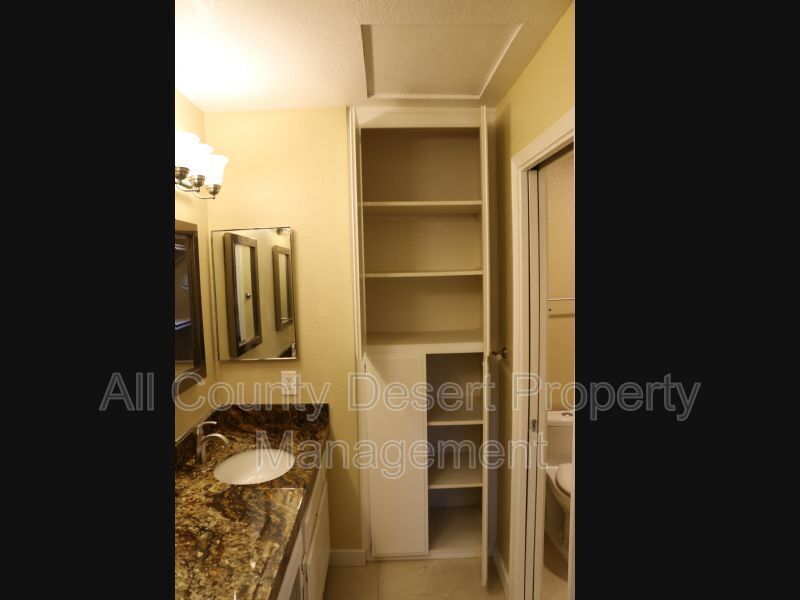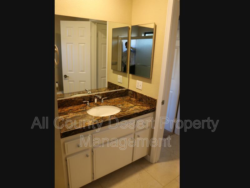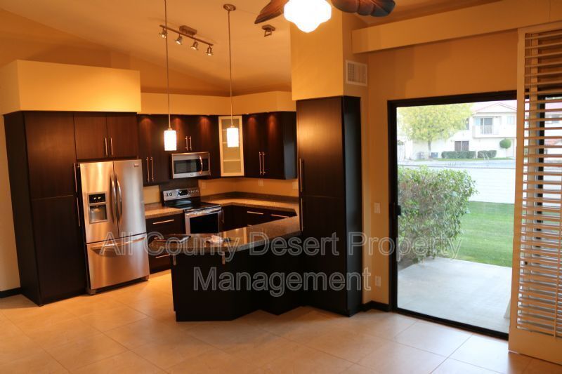 Beautiful remodeled 2 BR, 2 BA condo in gated Mountain Villas community near the Living Desert and walking distance from El Paseo. This property is a private end unit on a corner lot. Kitchen has sparkling Cambria Quartz Stone Surfaces with recessed lighting over the new cabinets. Tile throughout. Custom shutters in the great room to increase energy efficiency. Stainless steel appliances including an electric stove and refrigerator with french doors, built in microwave and dishwasher. Washer and Dryer located in the garage. The main living area features a gas fireplace and a large shaded atrium, perfect for the plant enthusiast. There is a bonus area upstairs that could be utilized for an office and includes a wall unit that opens into a queen size bed. The master suite features a private balcony, huge walk in closet, and adjoining bath with double vanity and 5 jet shower head. Both bathrooms have beautiful cambria counter tops. There is a large double car attached garage with extra space for a workshop or golf cart. HOA fees and gardening services are included in the lease which include access to 3 community pools, one of which is heated year-round, 2 tennis courts, and the clubhouse. Tenant to pay all utilities. All applicants must pass a comprehensive background screening including income verification and landlord references. Renter's insurance is required. All applicants must have the following: monthly income of three times the monthly rent, no prior evictions, good rental history, and an acceptable credit score. Call for an appointment today!! * If you see this home advertised online for less than the rental amount quoted here, the ad is a SCAM. We are the only authorized agent for this property. Please email us a link to any bogus or fraudulent ads so we can report it to the appropriate authorities. Please do NOT send money to anyone who offers keys in exchange for a deposit check - especially if they are out of state. When in doubt, please feel free to contact us. ***