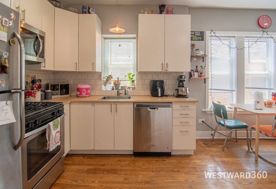 MOVE-IN JULY 1! Updated 2BD/1BTH in Albany Park. Spacious TOP FLOOR features separate living room and dining room, updated kitchen with stainless steel appliances (including dishwasher and microwave) and in-unit washer and dryer! Updated bathroom with shower/tub combo. Recessed lighting throughout. One wall a/c included. Large bedrooms. Walking distance to Francisco & Kedzie Train Stations, Lawrence & Montrose CTA, Kedzie And Montrose restaurants, North Branch Chicago River, Horner Park, Welles Park, and more! Rent is $1900 plus $28/month for the Tenant Protection Plan. Water, radiator heat, trash/snow removal all included. Pets OK with some restrictions and fees. ~~APPLICATION & FEES~~ $65 non-refundable application fee via Westward360 app/lease. First month's rent of $1900 and one-time, non-refundable admin/move-in fee of $380 due at lease signing. NO SECURITY DEPOSIT. Property managers review all applications and credit, income, employment and rental history reports. For best chance of qualifying applicants must have 650+ credit with no bankruptcies or evictions, and combined gross income greater than 3x the rent ($5700+/month). Applicants must attach the last two pay stubs and their ID to the application. Pets OK with some breed restrictions, limit 100lbs. $250 Pet Fee at move-in + $25/monthly pet rent.