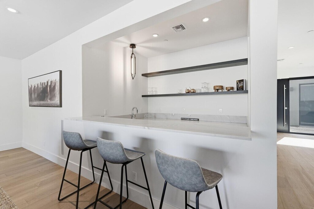This home in the gated Signature community at The Phoenician looks out toward Camelback Mountain and 18th fairway of the Phoenician Golf Course,offering a great mix of privacy,views,and easy indoor-outdoor living. The layout is functional and set up for both everyday living and entertaining. On the main entry level,theres a large living space with a built-in wet bar,complete with a beverage fridge and ice maker. Sliding glass doors open fully to the backyard,where youll find a pool,covered patio,and direct views of the course. Also on this level you will find two guest bedrooms; one with its own full bathroom. A separate casita adds extra flexibility,also complete with its own bathroom and closet,ideal for guests. Upstairs is the primary living area,accessible by either stairs or a private elevator. The space is open and bright,combining the kitchen,dining,and living areas into one central hub. The kitchen features Thermador appliances,a large island,ample storage,and a wine fridge,all with a clean,modern design. Just off the living area is a covered balcony with a gas fireplace and wide-open views of the surrounding landscape. The primary suite is located on this level as well,offering plenty of space,its own balcony,and a bathroom with a soaking tub,walk-in shower,dual sinks,and a custom closet. Additional features include smart home elements like motorized shades and a security system. Residents also have access to community amenities such as a pool,spa,and fitness center. A home with thoughtful layout,standout views,and a comfortable,open feel that really comes to life the second you step inside.