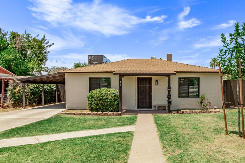 2 bedroom, 1 bathroom single family home in the Uptown neighborhood of Phoenix featuring updated kitchen with cherry cabinets, granite countertops and stainless steel appliances (fridge, microwave, dishwasher and gas stove). Remodeled bathroom and wood style LVP throughout. Washer and dryer included. Front yard enjoys flood irrigation, while the backyard is fully fenced and low maintenance gravel. Two outside storage rooms. Close to amazing restaurants on Central & 7th St, the Biltmore and downtown. Easy freeway access to the 51. Located in the Madison school district. 1 car carport and RV gate on the side of the house. Corner lot. One year lease. No previous evictions. No smoking or vaping of anything in the house. No drugs. Two dogs permitted upon approval and with $300 pet deposit and $25/mo pet rent. No cats.Income must be 2.5x monthly rent.Tenant responsible for electric, gas, internet and landscaping. $75/mo toward water, $19/mo EEMP. Admin fee $99. Owner is agent.