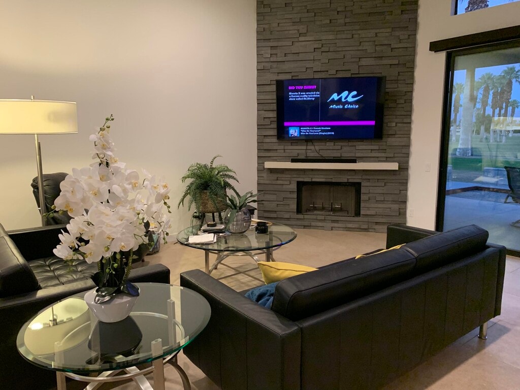 Beautifully remodeled modern home on the golf course,with gorgeous mountain views,lighted bocce ball court,and private pool and spa. Turnkey furnished for instant occupancy,with high ceilings,large bathrooms,tile flooring,gas BBQ and firepit. Watch golfers from the rear yard,or enjoy private pool/spa area in the front yard. Two car garage plus driveway parking. Optional golf cart available. Not available 11/1/24 - 4/30/25.
