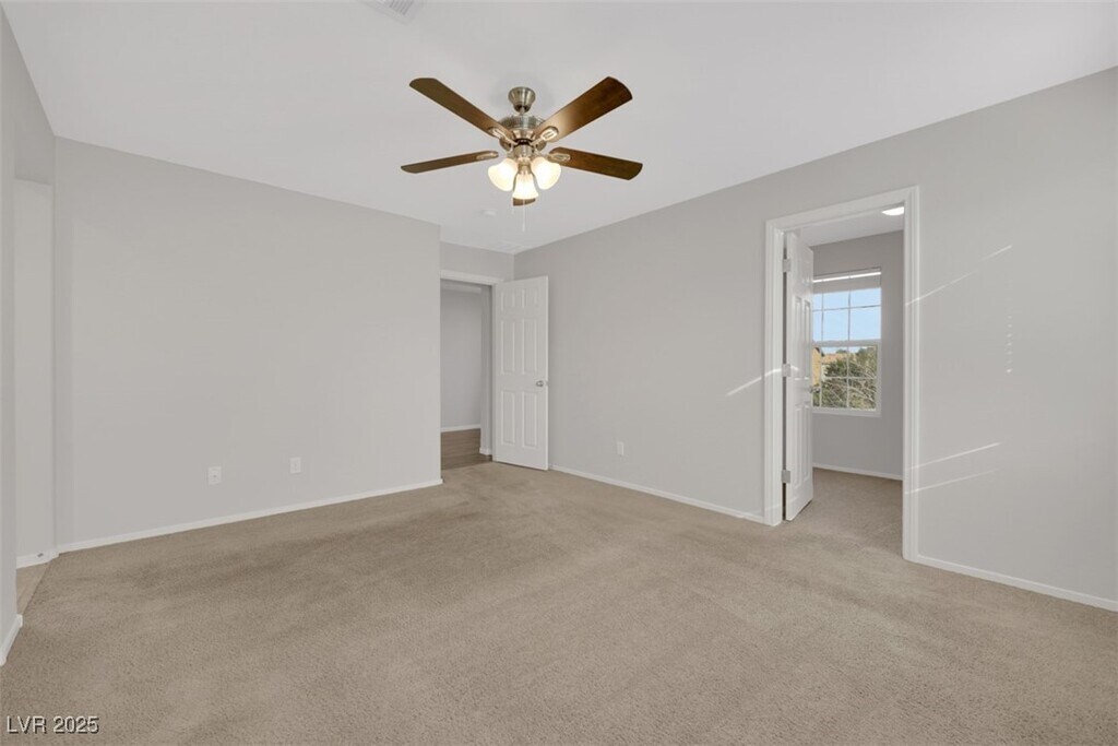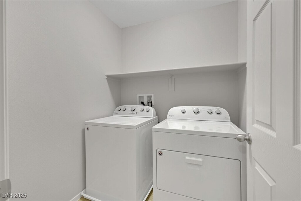 Cute 2 story home located close to Nellis Air Force base. Laminate flooring downstairs, granite counters, recessed lighting, ceiling fans, walk in closets, yard, and a 2 car garage. Freshly painted and ready for move in!