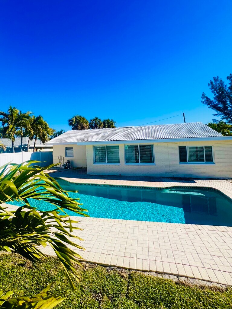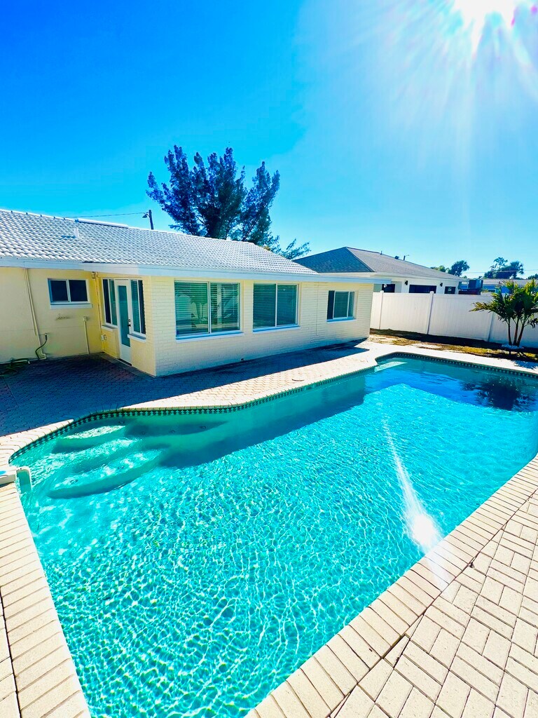 Welcome to your Dream Coastal Pool Home Retreat! This beautifully newly renovated Pet Friendly home at 455 81st Ave in St Pete Beach offers the perfect blend of modern comfort and beachside living. Located just a short distance from the sugar-sand beaches of the Gulf, this property is ideal as a primary residence, vacation home, or investment. Step inside to discover a bright, open floor plan with stylish finishes and ambient lighting throughout. The recent renovation includes updated flooring, a modern kitchen, refreshed bathrooms, and contemporary fixtures, creating a clean and inviting atmosphere. Natural lighting fills the home, enhancing the relaxed coastal feel. Step into your own private backyard oasis featuring a spacious yard designed for relaxation and entertaining. The sparkling pool creates the perfect setting for swimming on warm days, while the expansive patio offers plenty of room for BBQs and gatherings with friends and family. Lush palm trees add a resort-style feel, providing beauty and a touch of privacy. Whether you're hosting summer parties or enjoying a quiet evening outdoors, this backyard is the ultimate space for outdoor living. Enjoy Florida living with easy access to the beach, local restaurants, shopping, entertainment, all while being tucked away in a desirable St Pete Beach neighborhood. whether you're soaking up the sun, entertaining guests, or simply unwinding after a day at the beach, this home delivers comfort, convenience, and charm. Move-in ready and minutes from the beach - this is St Pete Beach living at its best.