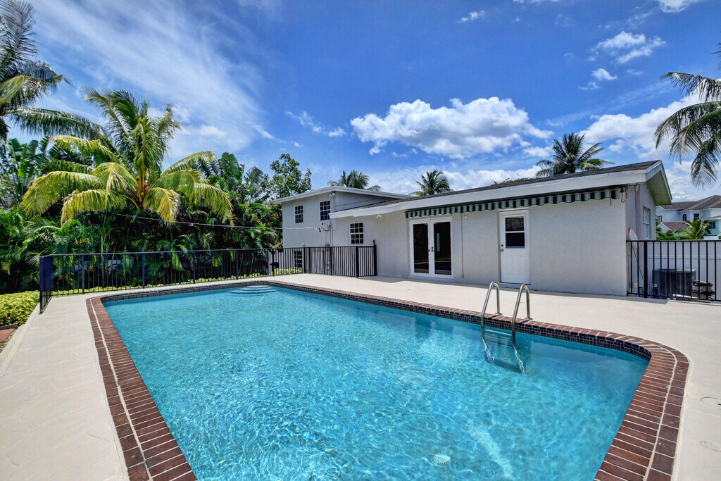 Gorgeous single family pool home at Golden Triangle @ East Boca Raton! Beautiful 3 bedroom, 2 bath, totally updated, newer kitchen and bathrooms, tile floor throughout, wine cooler, abundance of natural light, smart fridge, LED mirrors in bathrooms, large eat-in kitchen area, California closets in all rooms. Ideal summer backyard, perfect for entertainment and outdoor activities! 1.5 car garage, Tiki hut, fire pit, sunshade canopy & more! LAWN AND POOL MAINTENANCE INCLUDED with the rent. Excellent location one block from Lake Wyman Park w/ tennis courts & kids playground, A-rated schools, walk or bike to the beach, close to shopping, Downtown Mizner Park, Royal Palm Place and the best Boca Raton has to offer! 2 miles to I-95, Annual Lease Only. NO HOA. Call today for more information!