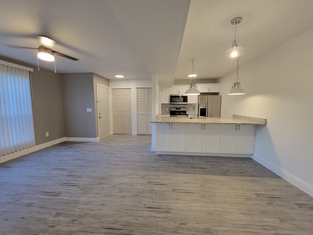 Beautiful 1-bedroom, 1-bath corner-unit condo located in the highly desirable Harbor Club Condominiums in Palm Harbor. This all-ages, first-floor unit offers tranquil water views and breathtaking sunset views. The condo features an open floor plan with new tile flooring throughout, white shaker cabinets, granite countertops, and brand-new appliances, including a ventless washer/dryer combo. Harbor Club offers resort-style amenities, including two swimming pools, hot tub, two tennis courts, clubhouse, and on-site laundry facilities. The community connects directly to the Pinellas Trail, perfect for walking or biking to nearby restaurants and shops. Enjoy the Florida lifestyle with Caladesi Island and Honeymoon Island just minutes away. Rent includes water, sewer, and garbage. $1,600 Rent and $1,600 security deposit required. Application required; background check will be conducted. Small pets up to 30 lbs are allowed with approval; pet deposit required.
