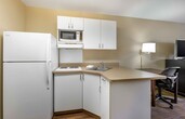 Enjoy a fully furnished studio suite in our hotel at an affordable rate with free wi-fi, free utilities and free premium cable. Each studio suite has a full kitchen with full-size refrigerator, stovetop and microwave, and has a flexible workspace and plenty of storage. All our hotels are pet-friendly and have on-site guest laundry available. Plus, there are no long-term commitments and you can adjust your length of stay to meet your individual needs, subject to applicable property and/or local restrictions. Additional fees may apply. Booking restrictions and taxes apply. Rates and availability are subject to change without notice.