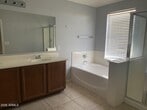 4 bedroom,2.5 bathroom two story home with 2,777 sq ft located in Maricopa. The main level offers two separate living areas and a large kitchen featuring an oversized island,generous cabinet storage,and open flow for everyday living. Fresh paint and newer carpet create a clean interior feel. Refrigerator included. Upstairs includes a spacious loft and four bedrooms with walk in closets. The primary suite features a private bath with separate tub and shower,dual sinks,and an oversized walk in closet. Washer and dryer included. Backyard provides outdoor space for enjoyment. Tenant responsible for landscaping and pest control.