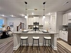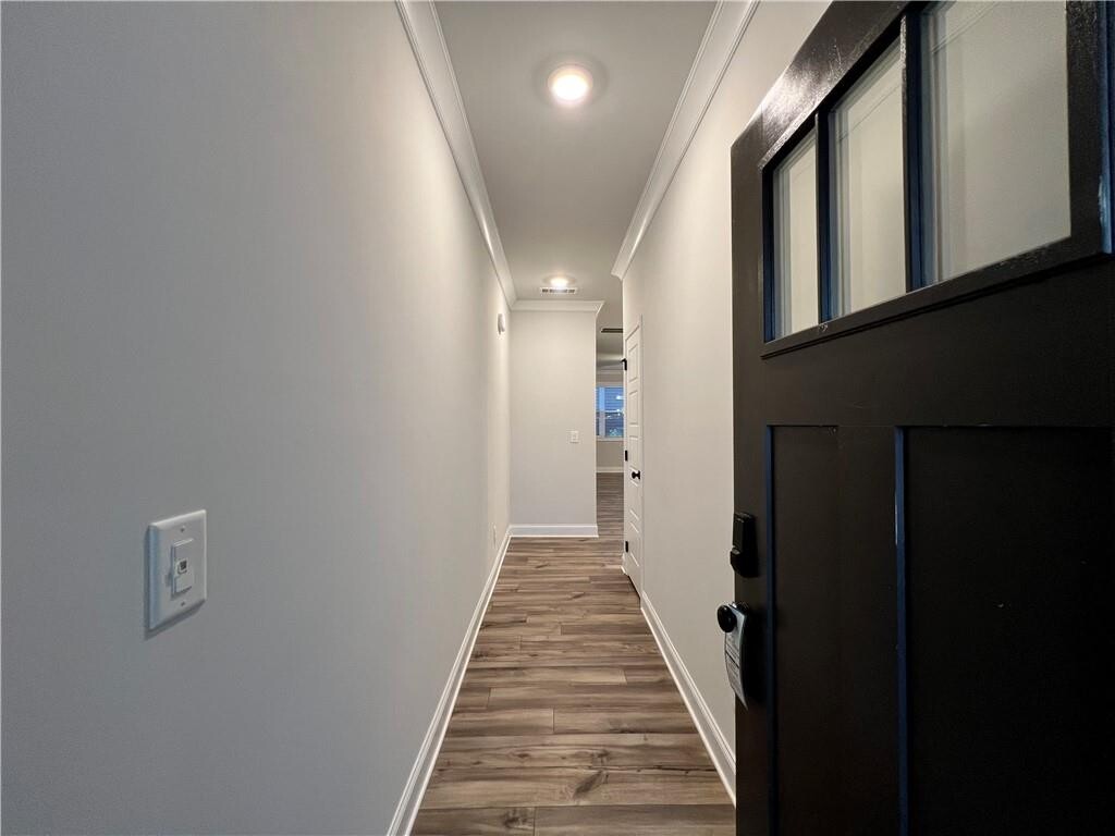 Immaculate Move in Ready !! Like NEW !! Charming 3 bedroom 2.5 bath with 2 car garage townhome is waiting for you ! Pets are negotiable. Covered entrance foyer. Step inside to discover an open-concept floor plan with luxury vinyl plank throughout on Main and Stairways. Fresh designer paint. Spacious kitchen features gorgeous white cabinets,granite countertops,Gray color tile backsplash,stainless steel appliances w built in microwave. Spacious island with breakfast bar seating & elegant pendant lighting. Convenient one bowl farm sink with black matte finish faucet. Primary suite offers a tray ceiling,an OVERSIZED WALK-IN CLOSET,and oversized shower with dual vanities and linen closet. 2 other spacious bedrooms with a shared bathroom. Beautiful tiled bathroom flooring. Wooded private backyard is a plus. 2" blinds throughout,Ring Doorbell,Smart Ecobee thermostat. Plenty of storage space. Just minutes from Downtown Gainesville,nearby Chick-fil-A,Starbucks,Target,and Publix,with easy access to I-985 and Lake Lanier.