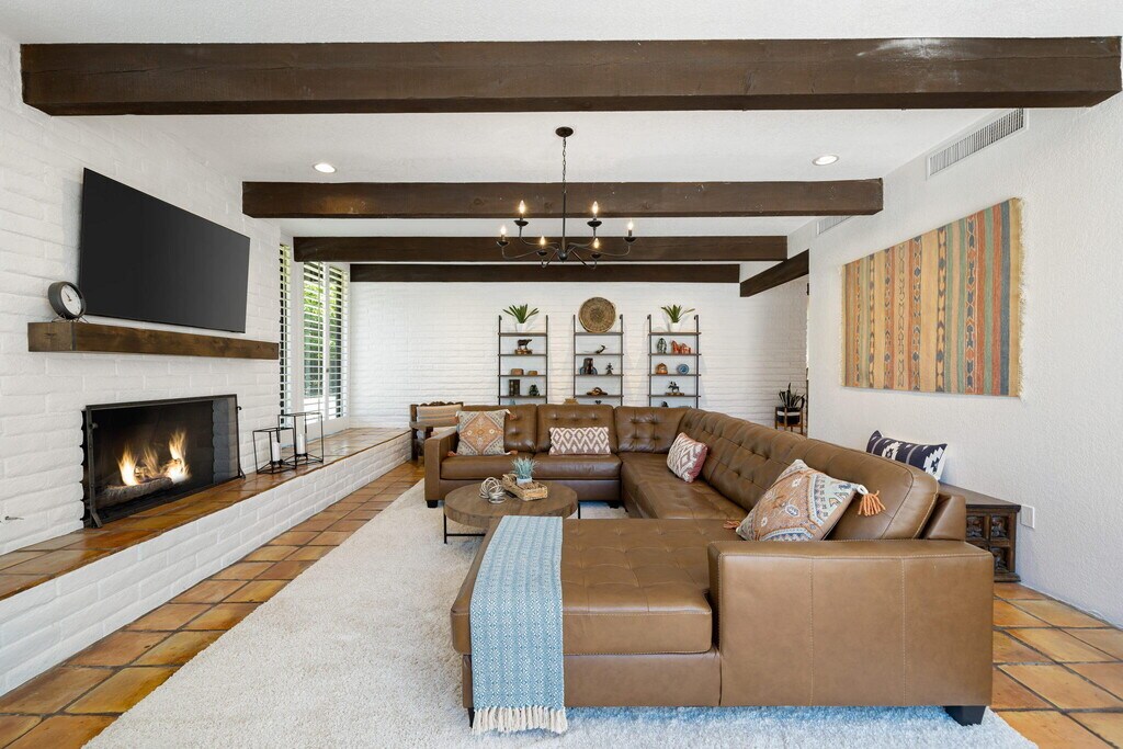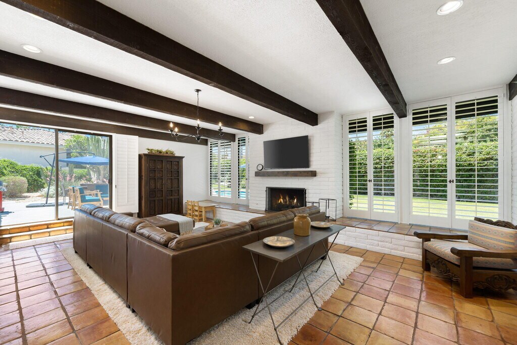 Leased Dec. 1,2025 - April 31st,2026. Available May - Oct. call for pricing~ Come and enjoy the ultimate desert lifestyle~ You will find this beautiful furnished 3 bed/3 bath updated home nestled in a cul-de-sac in prestigious Indian Wells. Gorgeous Southern Mountain Views await you. Enter through the double doors into this modern Hacienda home of unique finishes,Saltillo tile & wood plank floors. As you step down to the living room,there is a dramatic wall to wall windows,wood beamed ceilings w/large screen TV & as your focal point a floor to ceiling Brick Fireplace. The fully equipped Chefs Kitchen features; center Island,slab Quartz counters,custom back splash,custom finished cabinetry & Stainless Steel Appliances w/ 6 burner Gas Range/Electric Oven. Dining for 8 w/ Bar & Wine Cooler. Luxuriate in the Primary Suite with walk in shower,double waterfall shower heads,dual vanities,King-size bed and sliders that lead out to patio area. Guest Bedrooms,one with a King Bed and the 3rd with a Queen bed,TV's and ceiling fans. Interior Laundry. Entertaining Patio invites you into a newly replastered-saltwater sparkling Pool & Spa,Imagine cocktails on the Patio as you marvel at the sunsets enjoying the large private backyard,various Cactus & mature Fruit Trees- your picture-perfect lifestyle at this premiere Indian Wells location. 2 Car attached garage complete the home. High speed Internet & Spectrum TV. Minutes away from Golf courses,Shopping & Dining.
