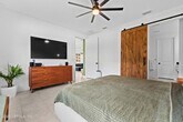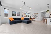 Step into this stunning 4-bedroom,3-bath home featuring a spacious open-concept floor plan and upscale finishes throughout. The gourmet kitchen is a chef's dream with an oversized island,sleek black quartz countertops,GE Profile appliances (including range with air fryer,hood,refrigerator,and dishwasher),and a cleverly hidden microwave in the pantry. Enjoy thoughtful touches like a deep quartz sink with touch faucet,water softener,and reverse osmosis system. The home boasts 17' tile flooring,custom blinds with motorized shades,and raised vanities for added comfort and style. The primary suite offers a luxurious retreat with a beautifully designed bath,custom closet organization,and a sliding barn door for added character. A third bedroom with a private bath makes an ideal guest suite or space for multi-generational living. Step outside to enjoy peaceful pond views,and take advantage of the family-friendly community amenities. MLS# 2117510