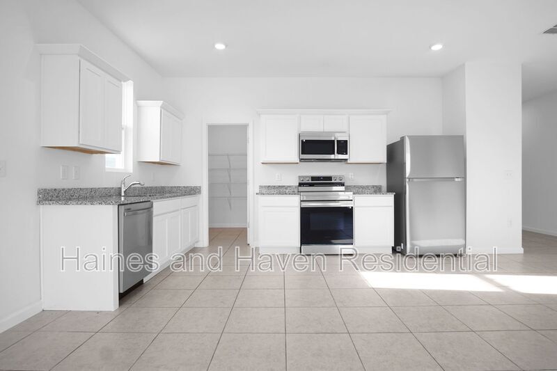 Welcome to Mabel Place in Lake Wales. This 2024 construction home is move-in ready and offers 1,634 heated square feet (2,188 total) with tile flooring throughout, no carpet! The property sits on a well-sized lot and features a two-car garage and driveway parking. Upon entry, you’re greeted by a hallway layout with two guest bedrooms on the left, separated by a full bathroom with a tub/shower combo. On the right, you’ll find garage access and a dedicated laundry room complete with washer and dryer. At the rear of the home, the space opens into a large kitchen, living, and dining area. The kitchen features modern cabinetry, matching appliances, and a walk-in pantry. Sliding glass doors provide access to the backyard, and the primary suite is privately located off the main living area, offering a spacious layout, walk-in closet, and en-suite bathroom. Conveniently located just off Scenic Highway with easy access to US-27, and close to Eagle Ridge Mall, Lowe’s, and The Shoppes on the Ridge. Showings available 7 days a week—schedule today!