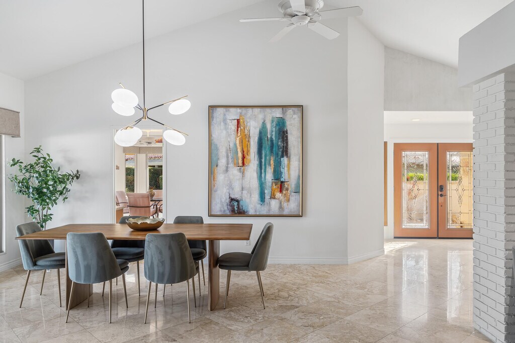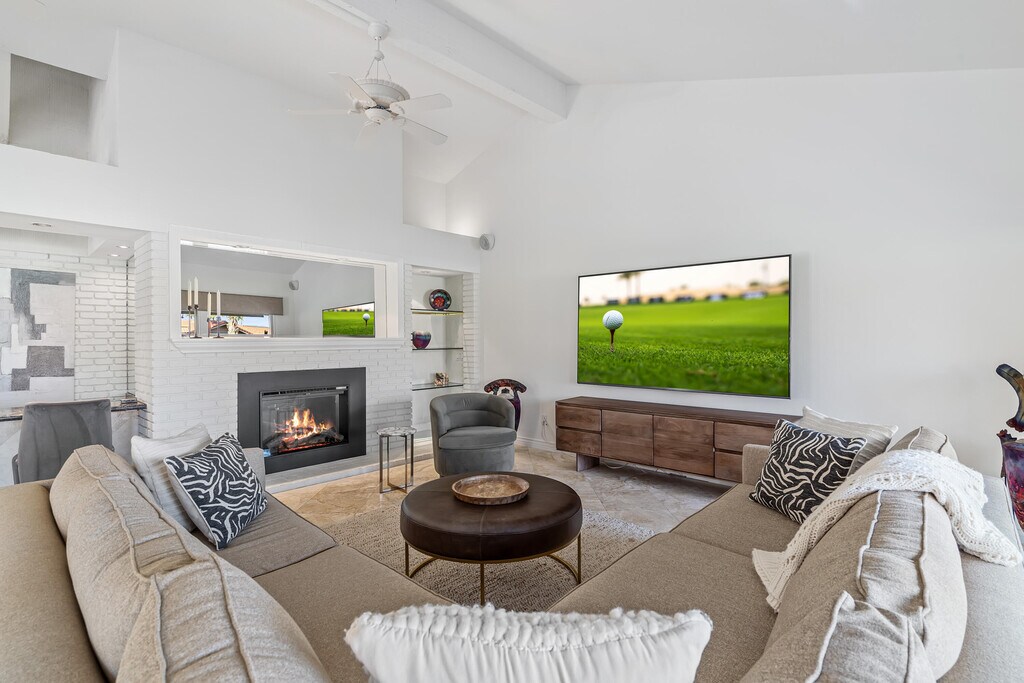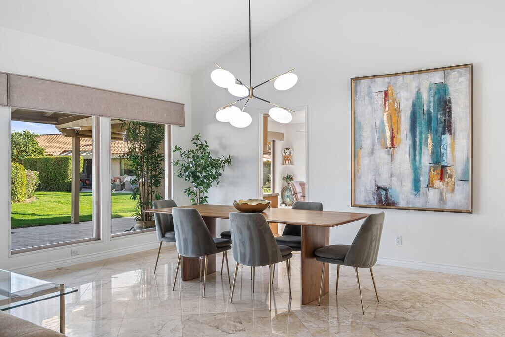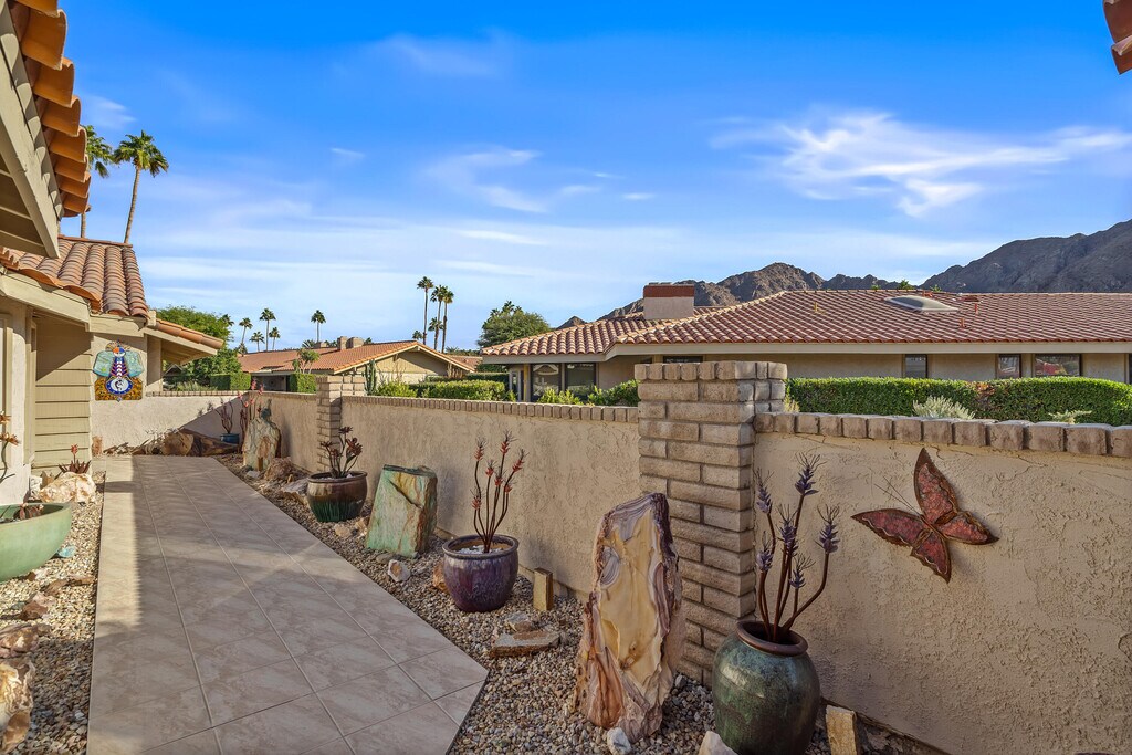 Exquisite Luxury Living in Indian Wells Country Club! Step into a world of elegance and comfort featuring 3 bedrooms and 2 full bathrooms,plus powder room. Designed for those who value the finer things,this home offers high end amenities and breathtaking mountain views! Upon entry enjoy the seamless flow of the great room,wet bar and dining area warmed by a contemporary fireplace and new upscale furnishings offering an inviting atmosphere. The generously sized kitchen is well appointed with an island,breakfast nook,computers area and wine cooler. Celebrate SMART living here with electric shades,shutters and blinds that allow you to control natural light with ease and 26 Solar owned panels keeping the electric bill to a minimum! The primary suite features designer linens,a large walk in closet,sitting area and a marble jacuzzi tub and separate marble shower offering a spa -like retreat right at home! The cozy guest bedrooms are entertainment ready,completed by TVs and lovely linens in each room. Style meets comfort enhanced by a hospital grade air filtration system,ceiling fans and tile throughout. Direct access from the 2 car/golf cart garage into the home and a keyless entry at the front door,make living convenient and easy. The richly landscaped outdoor patio is just steps away from the pool and spa. Offered Turnkey,by the month,all year long! Come savor the SPLENDOR of a lifestyle you'll LOVE! Seasonal Rates: November 2025 through May 2026,$8500/Month; Rent May to October 2025,negotiable