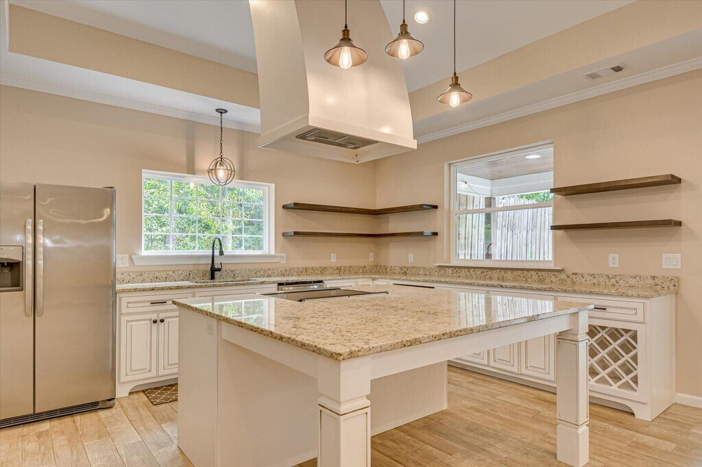 Stunning All-Brick Custom Ranch Home on 1.24 Acres - Perfect for Family Living! Set on a spacious 1.24-acre lot,this all-brick,custom-built home offers modern living at its finest. Less than four years old and boasting 2,939 square feet of thoughtfully designed space,it's ready for your family to move in and make memories. Step inside to a welcoming entryway featuring a convenient half bath and a dedicated office space—ideal for working from home or study time. The open-concept layout flows effortlessly from the kitchen to the great room,creating the perfect gathering spot for family and friends. The chef's kitchen is equipped with granite countertops,stainless steel appliances and an oversized island,perfect for cooking,entertaining,and everyday living. This home features three spacious bedrooms and 3.5 bathrooms,including a luxurious master suite with a walk-in closet,laundry connection,and an elegant bathroom featuring a glass-enclosed,oversized walk-in shower and his-and-her vanities. On the opposite side of the home,a flexible space and a large recreation room offer endless possibilities. Two additional bedrooms each have a private adjacent room with a sink and refrigerator hook-up—perfect for guests,in-laws,or growing family needs—plus their own full bathrooms. Step outside to your private backyard retreat,complete with a covered patio,outdoor kitchen,and sparkling in-ground pool—ideal for entertaining or relaxing under the sun. Enjoy the privacy of a generous lot while remaining within walking distance to all schools,in the highly sought-after Evans community. Don't miss your chance to call 4569 Gray Lane home—where space,style,and convenience come together beautifully!
