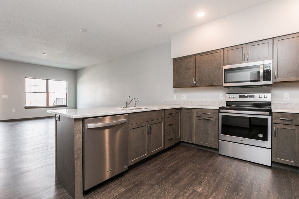 This zero lot townhouse is part of Kingston Quarters and is located at 457 2nd Ave SW, Cedar Rapids. It is an easy walk to all amenities in the downtown district and just minutes from the new Big Grove Brewery, Pickle Palace and Dash Coffee. These beautiful walk-ups have full basements for all the storage you would ever need. They offer private heated garages, private entrances, large bedrooms, each with their own bathrooms. The primary bedroom also has a spacious balcony to the rear of the property. They were new construction in 2020 and feature beautiful stainless steel appliances and quartz countertops.