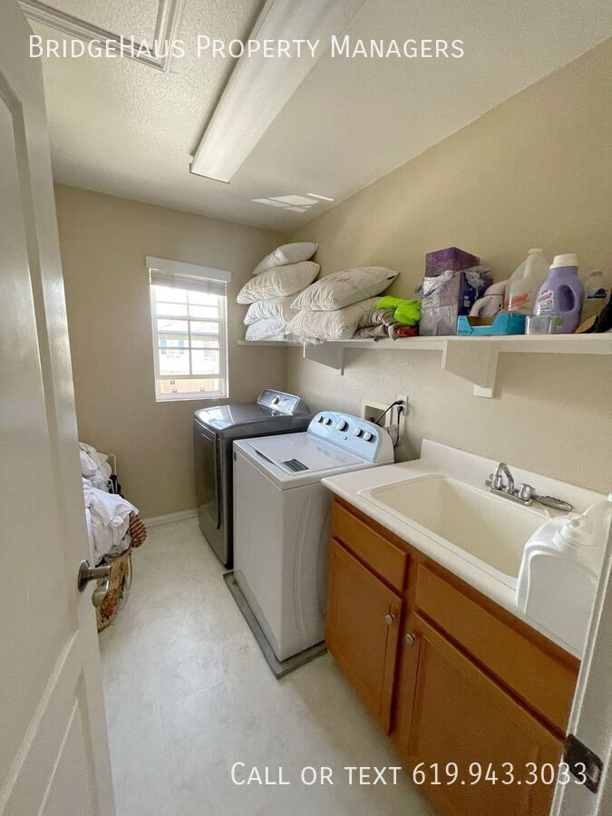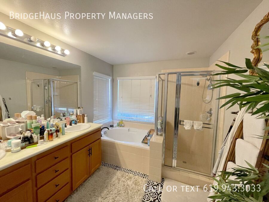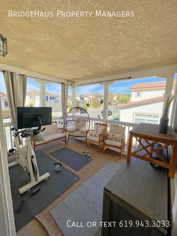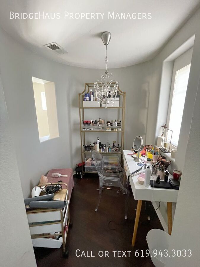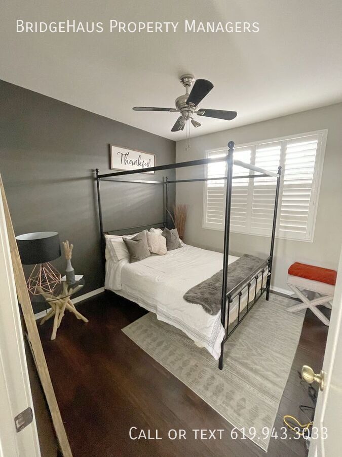 You will LOVE living here in this beautiful home in a great neighborhood! Gorgeous and spacious 4 Bedroom/3 Bathroom two-story single-family-home in Chula Vista. This beautiful home features 2,778 square feet of living space, a spacious backyard perfect to relax in the hot tub, cook up a feast in the barbecue, or read on the patio connected to the primary bedroom. Immediately upon entering the home, you are pleasantly greeted by a spacious front room with very high ceilings, beautiful staircase and newly installed chandeliers. The front room has ample natural light from all of the windows and is adjacent to the dining room. Continue walking into the home is an additional living area that flows into the kitchen. The kitchen comes with tons of storage and organizers for the cabinets and a wine bottle fridge next to the refrigerator. This area of the home also has lots of natural lighting flooding in from the windows and glass door to the fenced in backyard. One of the bedrooms and full bathrooms are downstairs – this bedroom has been newly painted with hardwood floors and built in wood blinds! The backyard is a real gem of this property! The hot tub with be staying and the BBQ, patio furniture, and kids set can also stay if desired! The other three bedrooms are up the beautifully built staircase. The primary bedroom is spacious and includes a dual sink bathroom, separate shower and tub and large walk-in closet. Attached to the primary bedroom is a peaceful outdoor patio that can include all the furniture in the photo as well as the bike to provide the perfect outdoor cardio session. The second bedroom has a newly installed light fixture and closet with sliding doors. The third bedroom is perfect for an additional closet as it has built in shelves along all the walls and a small area in the corner that is great for a make up vanity as two additional closets in the room as well. Down the hall is the laundry room with shelves and newly installed washer and dryer. This home also has an attached spacious two-car garage. Out front of the home is turf and if that wasn’t enough, the home also has solar, central AC and heating, and a water filter system throughout the house. BridgeHaus Property Managers, INC CA DRE #02143972 Brief Summary Of Rental Criteria - Household must make at least 2.5 times the rent in income, or sufficient housing allowance. - Applicants must have a minimum credit score of 650. - Each person over the age of 18 must complete an application and pay a $42 screening fee. - You must be willing to sign a 12-month lease. - We score each household based on their income, credit score and rental history. What You Might Have A Question About - Monthly Rent: $4,500. - Security Deposit: $4,500 up front to secure the property. - Pets: 2 Pet Max with a $500 Pet Deposit. - There is a two-car garage - In Unit Washer and Dryer - Available for Move In 5/10/26 House
