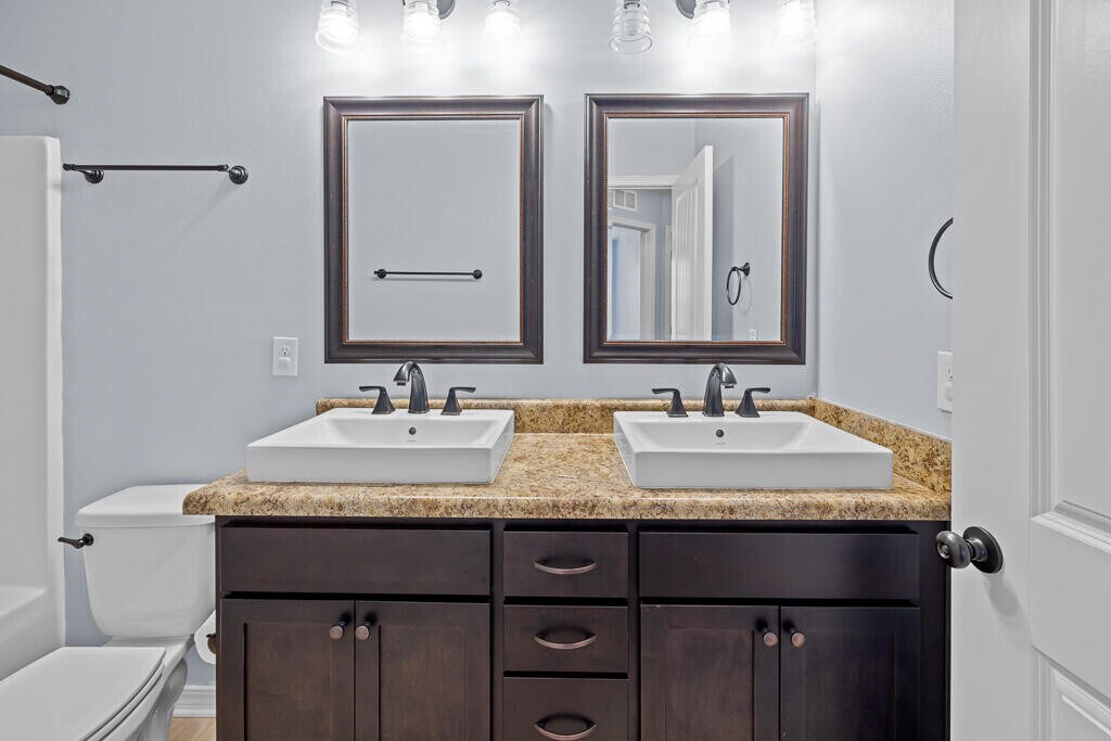 Available March 9th!!Welcome to this fantastic five-bedroom home in Stillwell Estates! This home features a downstairs master bedroom and upstairs are 4 bedrooms with a shared bathroom with double vanities! The spacious living room features wood-look luxury vinyl plank flooring that extends throughout the entire downstairs including into the kitchen and master bedroom with tile flooring in the bathrooms and interior laundry room which leads to the two-car garage. The kitchen is well-appointed with stainless steel appliances, white cabinets, drop-down pendant lighting, and a separate pantry; and the eat-in dining space has a wood accent wall. Pets considered with owner approval.