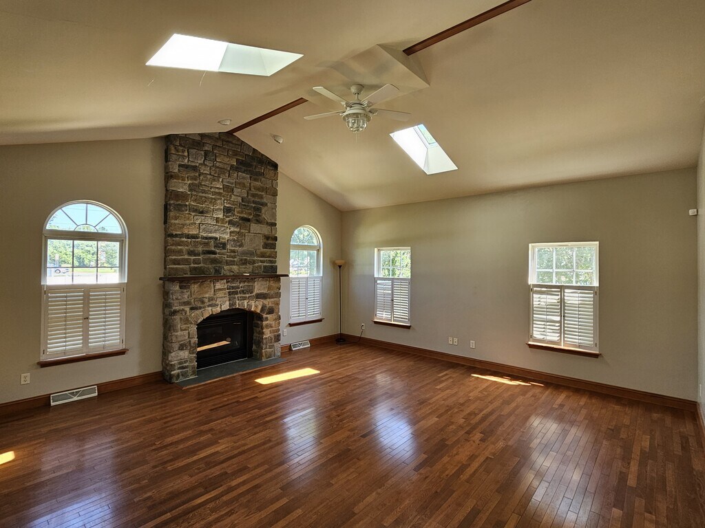 Welcome to this beautifully maintained home situated on a generous 0.58-acre lot! With 4 bedrooms and 2.5 bathrooms, this property offers plenty of space and flexibility to fit your lifestyle. One bedroom is conveniently located on the main floor and can easily serve as a home office or guest room. Enjoy relaxing mornings on the inviting front porch or host gatherings on the spacious back deck. Inside, the home features a formal living room and dining room, a large eat-in kitchen with a breakfast area, and a bright, airy family room with skylights and a cozy fireplace. The finished basement provides even more living space, complete with a half bath and one room with a drop ceiling—perfect for a media room, gym, or playroom—while the remaining areas showcase an exposed ceiling for a modern, industrial feel. A rare 3-car garage offers ample parking and storage. This home blends classic charm with modern comfort and is ready for you to move in and make it your own! Spacious 4-Bedroom Home with 3-Car Garage, Finished Basement & Flexible Living Spaces!