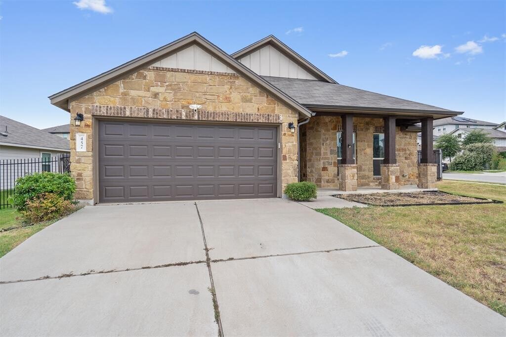 Welcome to 457 Red Matador Lane. Located in the sought-after Larkspur community, this 4 bedroom, 2 bath single-story home offers a thoughtful layout, modern finishes, and a unique backyard bonus! A modern office addition perfect for remote work, hobbies, or a private retreat. Inside, the open concept floor plan connects the living, dining, and kitchen areas, creating an inviting space for everyday living and entertaining. The kitchen features granite countertops, stainless steel appliances, and ample storage. The spacious primary suite includes a walk in closet and en-suite bath with dual vanities and a walk in shower. Three additional bedrooms and a second full bath provide plenty of space for family or guests. The backyard is a true highlight with its versatile office addition, offering a quiet and separate space while still being just steps from home. Enjoy outdoor living with a covered patio and fenced yard. Larkspur residents have access to community amenities including a pool, fitness center, playgrounds, and scenic trails. Conveniently located near shopping, dining, and major roadways, with an easy commute to Austin and surrounding areas.