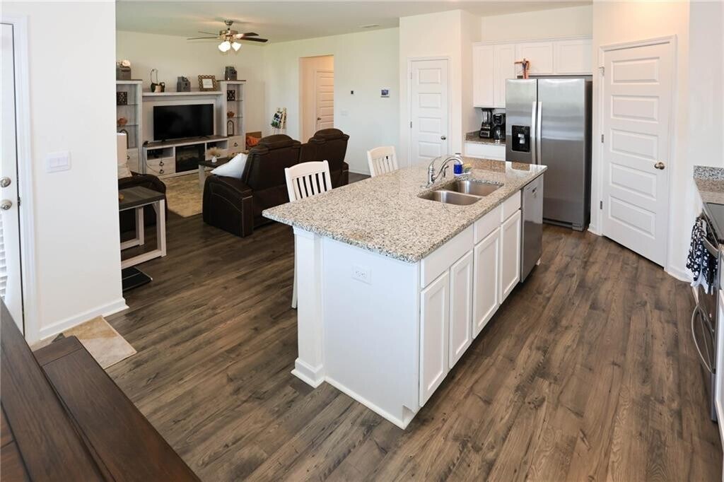 Welcome to this beautifully updated 3-bedroom,2.5-bath home offering comfort,style,and functionality all in one. Step inside to discover an inviting open-concept floorplan perfect for everyday living and entertaining. The spacious kitchen is a true highlight,featuring crisp white cabinets,gleaming granite countertops,and stainless steel appliances(inclusing fancy refrigerator!!) that combine classic charm with modern convenience. The primary suite is a private retreat,complete with a full ensuite bathroom and ample closet space. Two additional bedrooms and a second full bath provide flexibility for family,guests,or a home office. Enjoy seamless indoor-outdoor living with a covered back patio that opens to a fully fenced yard—ideal for pets,play. A two-car garage adds extra storage and convenience. Washer and Dryer is ready!! Don’t miss this move-in ready gem with timeless finishes and thoughtful design—your perfect place to call home!