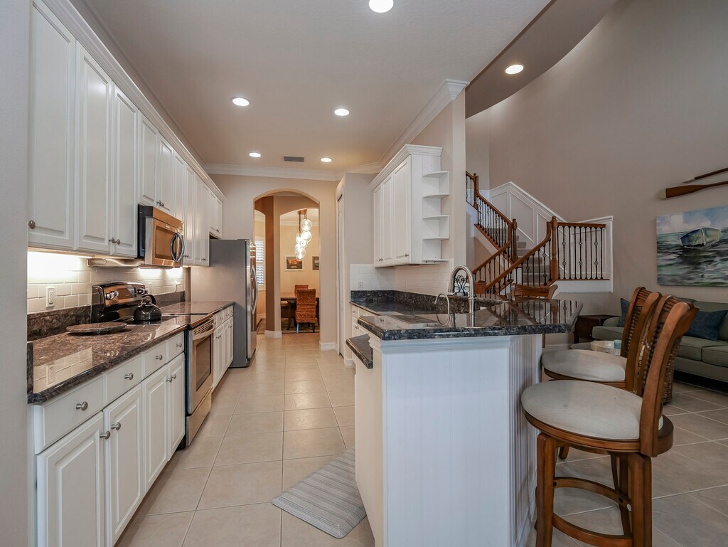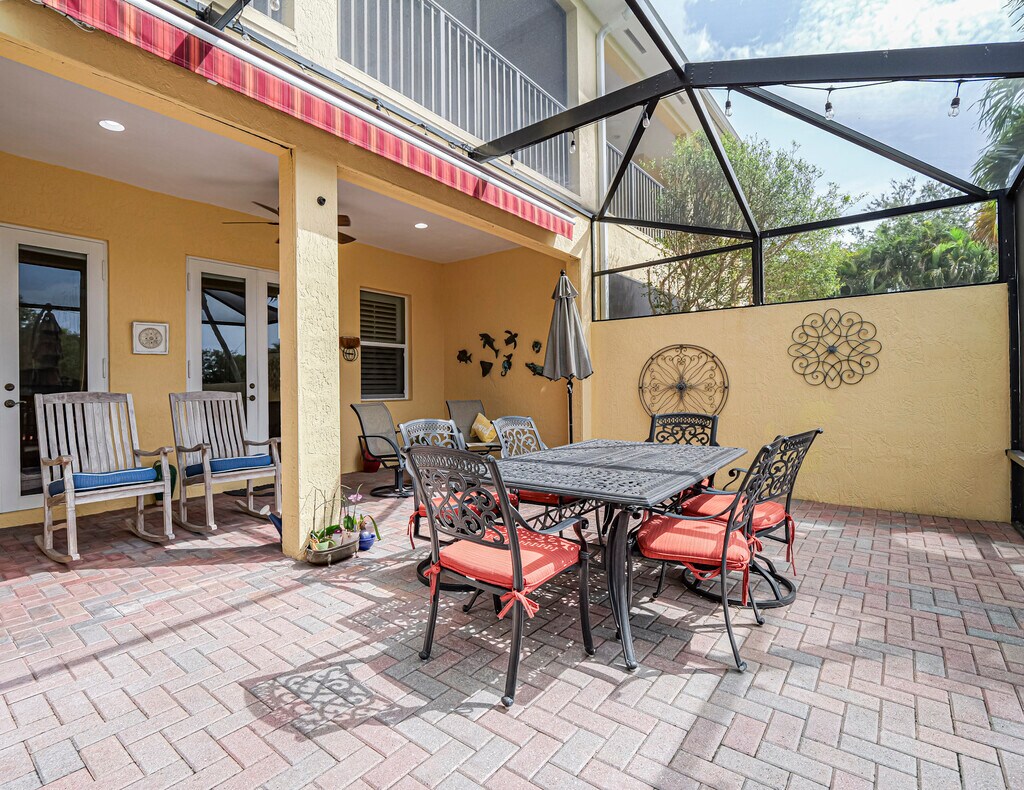 Discover luxury living in this turnkey townhome located in the gated community of Bridgepointe. Inside this 3 bedroom, 3.5 bath, 2-car garage, you'll find modern updates throughout, including 2025 AC, impact windows and doors, plantation shutters, stylish kitchen, with stainless-steel appliances, granite countertops, 2 master suites, 1 upstairs, 1 down, and elegant finishes. The open concept is ideal for entertaining, while the upper level offers 2 bedrooms, a loft and screened in patio. At just under 2,600 square feet, this updated space offers a perfect blend of comfort and style. Enjoy serene pond views from your private back patio, complete with hot tub, perfect for unwinding and relaxing.