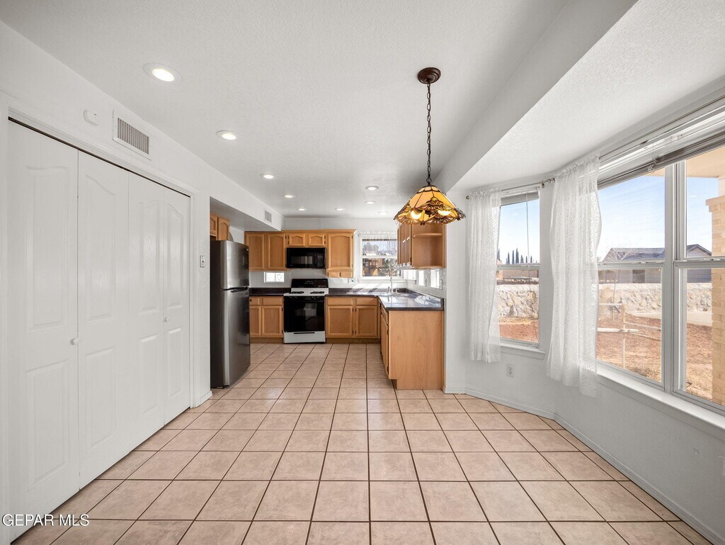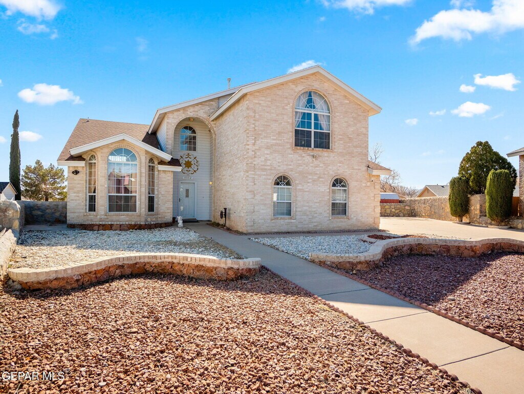 Beautiful brick two-story home located in desirable North Hills. This spacious home offers formal living and dining areas,with a kitchen that opens to the den and features a large pantry and breakfast nook. Enjoy soaring ceilings and abundant natural light throughout. The oversized upstairs primary suite includes a walk-in closet,dual vanities,a soaking tub,and separate shower. Two additional upstairs bedrooms and a loft share a full hall bath. Additional features include a separate laundry room,guest bath,refrigerated air,covered patio,and a large backyard. Side-entry two-car garage. Conveniently located near the mountains,Chuck Heinrich Memorial Park,mountain bike trails,and with easy access to Transmountain Road,Loop 375,Fort Bliss,shopping,and dining. Max 2 dogs,no cats