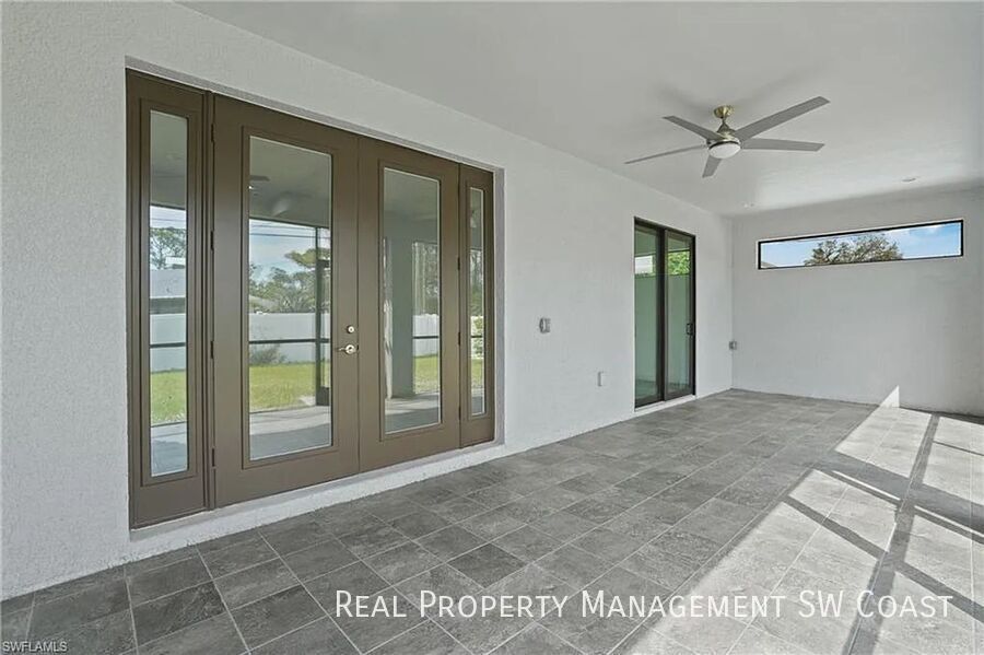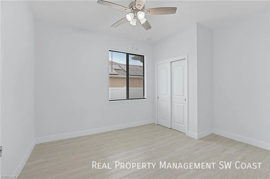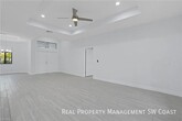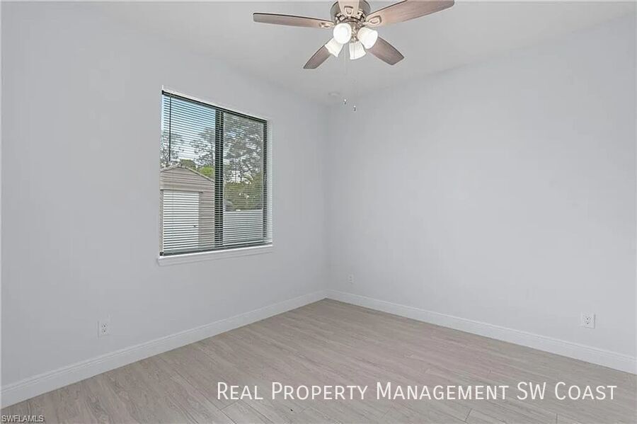 Home Features: - 4 bedrooms | 3 full bathrooms - Open-concept living, dining, and kitchen areas - Modern kitchen with stainless steel appliances, breakfast bar, and ample cabinetry - Master suite with large walk-in closet, dual vanities, soaking tub, and separate shower - Jack-and-Jill bathroom connecting two guest bedrooms - Bright, spacious living room with natural light - Full inside laundry room - Attached 2-car garage with plenty of storage Outdoor Features: - Fully fenced backyard offering privacy and security - Screened lanai, perfect for outdoor relaxation - Storage shed providing additional space for tools or equipment - Hurricane-impact windows and doors for added protection - Sprinkler system for easy and efficient lawn care Additional Features: - Ceiling fans installed throughout the home - Spacious walk-in closets - Energy-efficient construction to help lower utility costs Prime Location: - Just minutes from beautiful Bonita Beach, shopping, dining, and Coconut Point Mall - Quick and easy access to major highways for stress-free commuting - Situated in the desirable community of El Dorado Acres, known for its quiet, well-kept atmosphere - Plenty of space to store a boat or other recreational vehicles 2 Car Attached Garage Fenced Backyard
